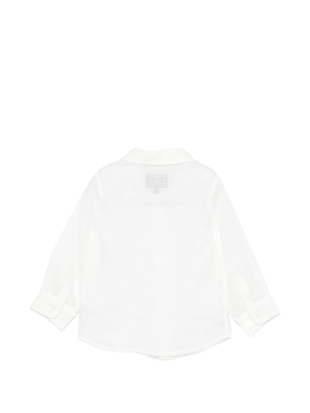 Camicia in lino, chiusura con bottoni , maniche lunghe, colletto classico, orlo curvo.