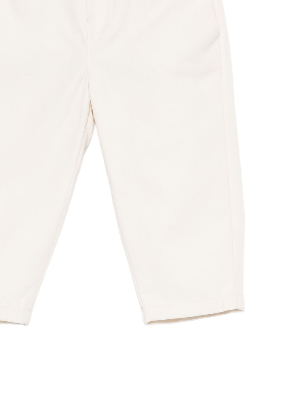 Pantalone con tasca posteriore con chiusura a bottone beige, passanti per cintura.