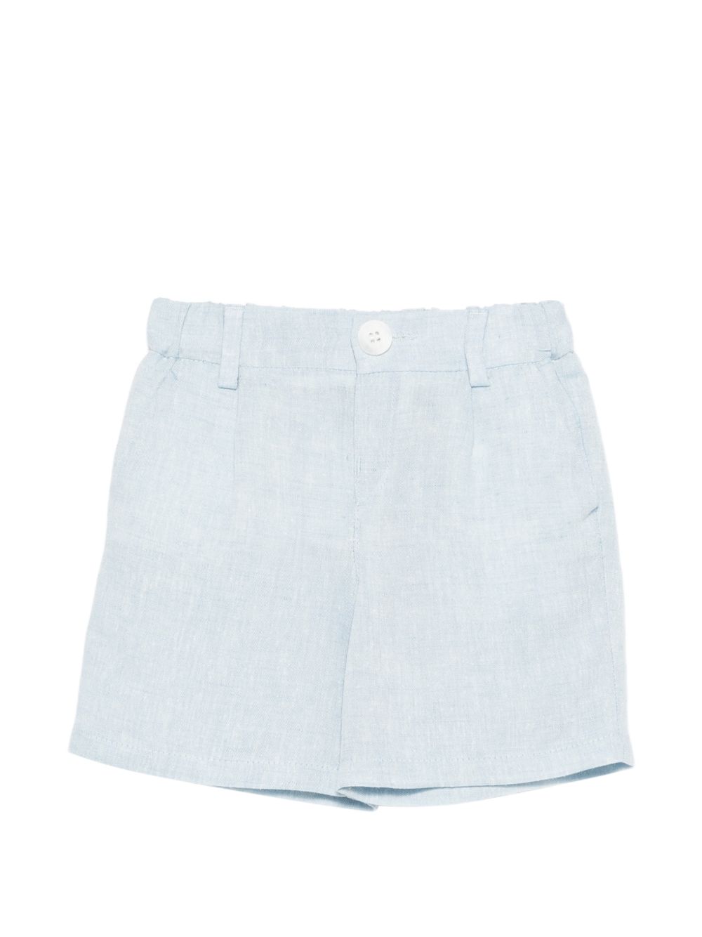 Shorts azzurro, in lino, vita elasticizzata, passanti per cintura.