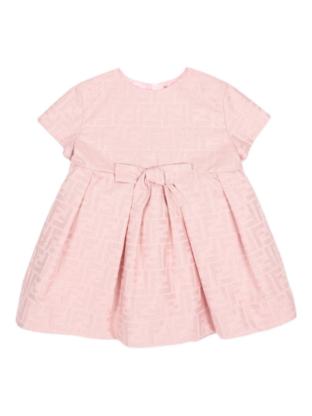 fiocco rosa fantasia maniche corte pieghe chiusura posteriore con cerniera