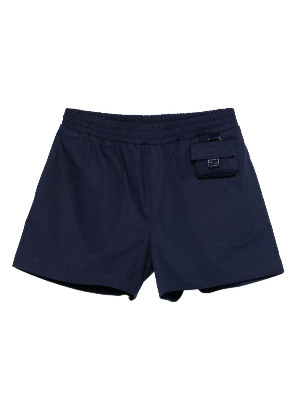 cintura elasticizzata blu navy, marsupio attaccato, orlo dritto