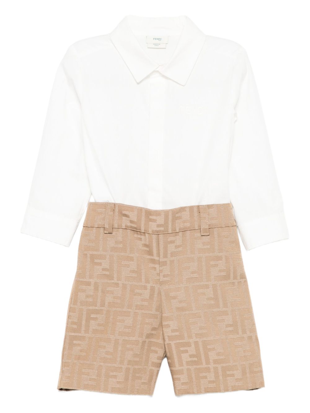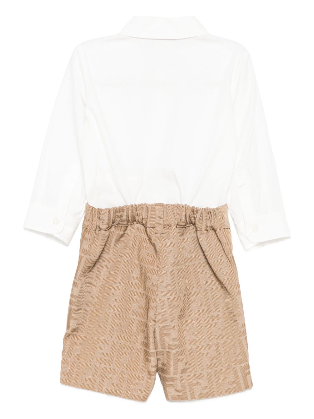 motivo FF marrone cammello elastico in vita chiusura con bottoni colletto classico maniche lunghe