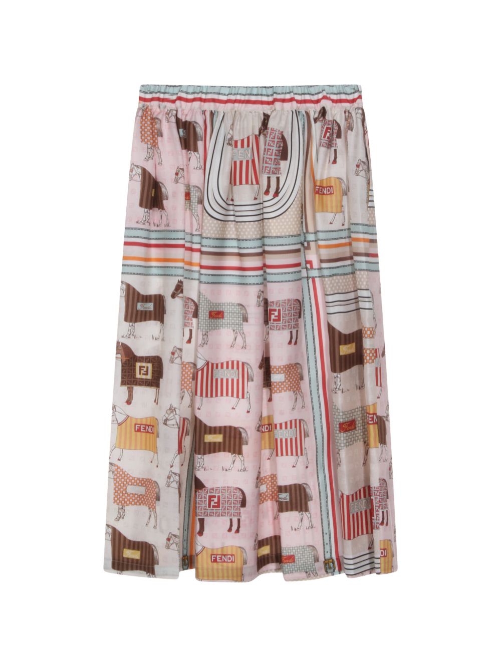 modello a righe con stampa di cavalli rosa/multicolore, elastico in vita, silhouette a trapezio
