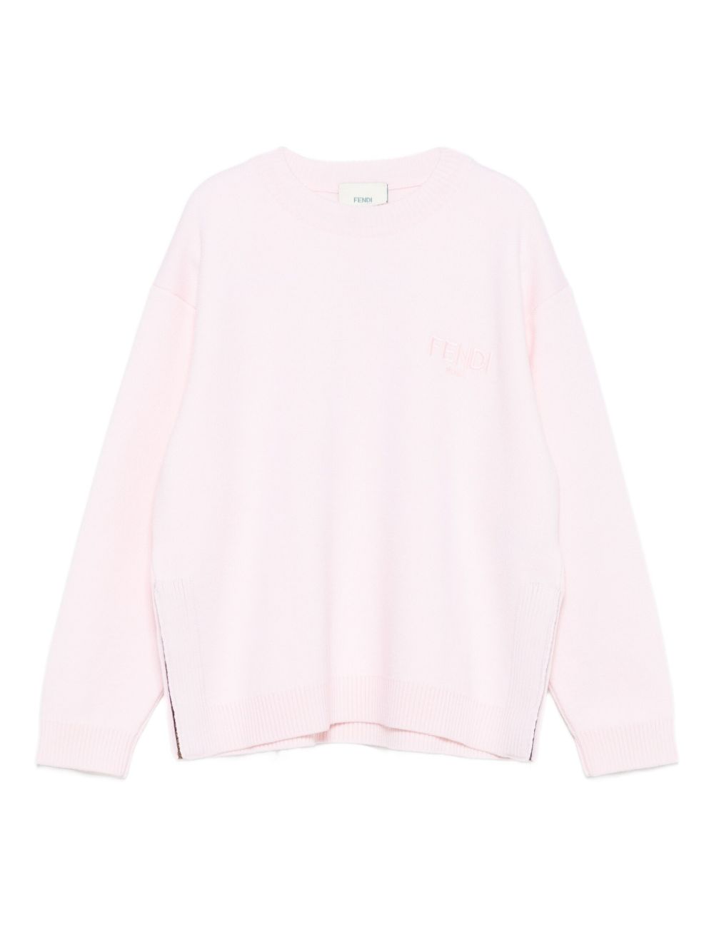 girocollo a maniche lunghe con logo ricamato in lana rosa