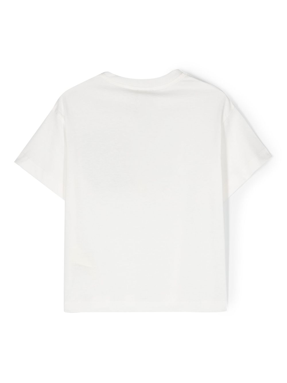 cotone bianco latte, stampa logo FF, girocollo, maniche corte, tasca applicata sul petto, orlo dritto