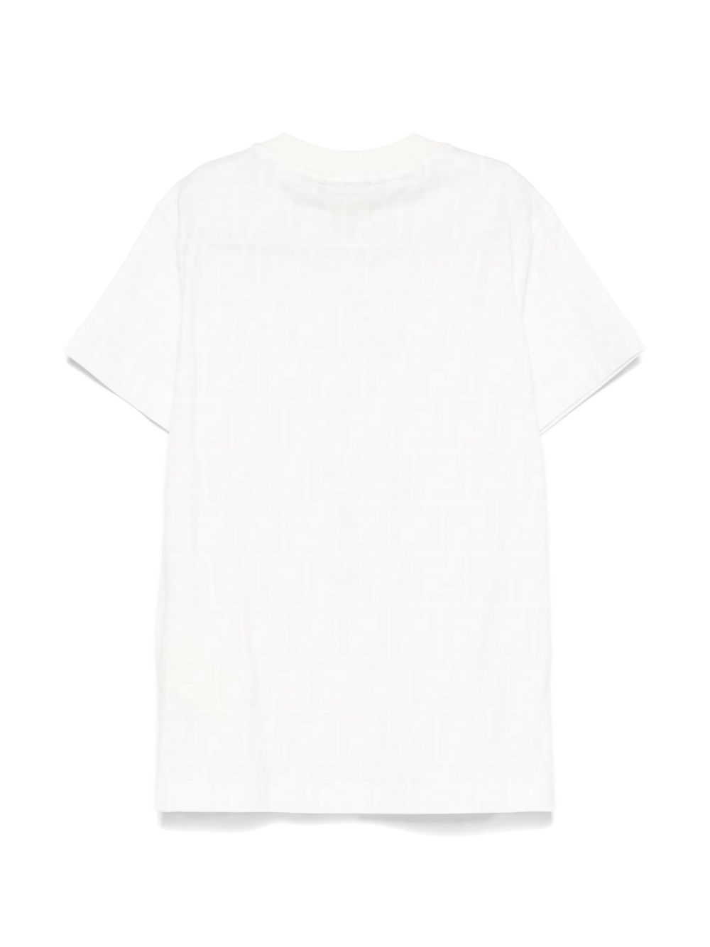 jersey di cotone leggero bianco, stampa con motivo FF, girocollo, maniche corte, orlo dritto
