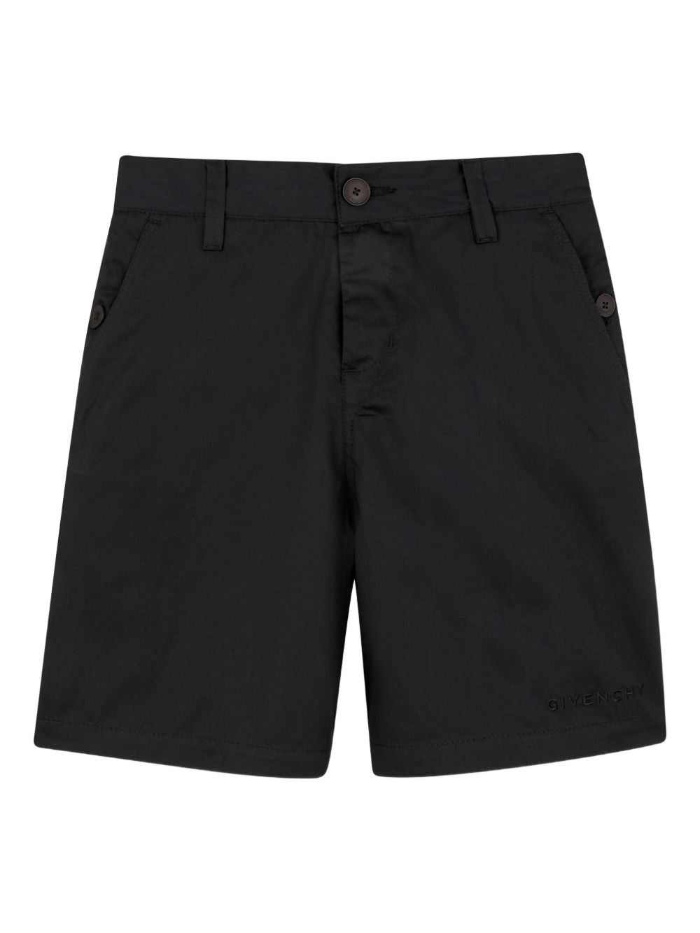 Bermuda con chiusura con bottoni neri, passanti per cintura, tasche posteriori applicate