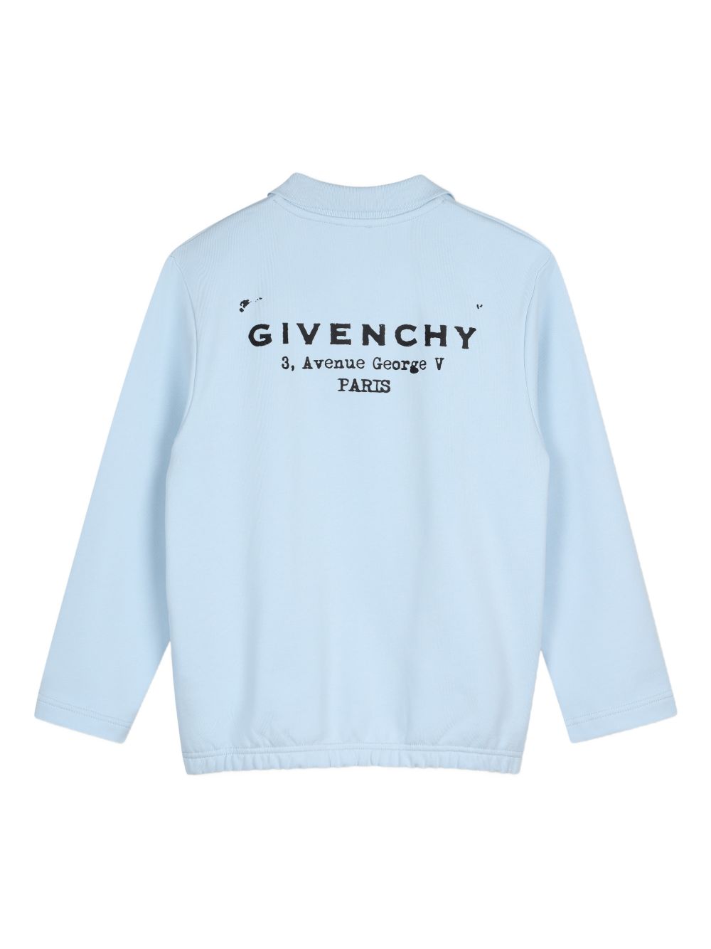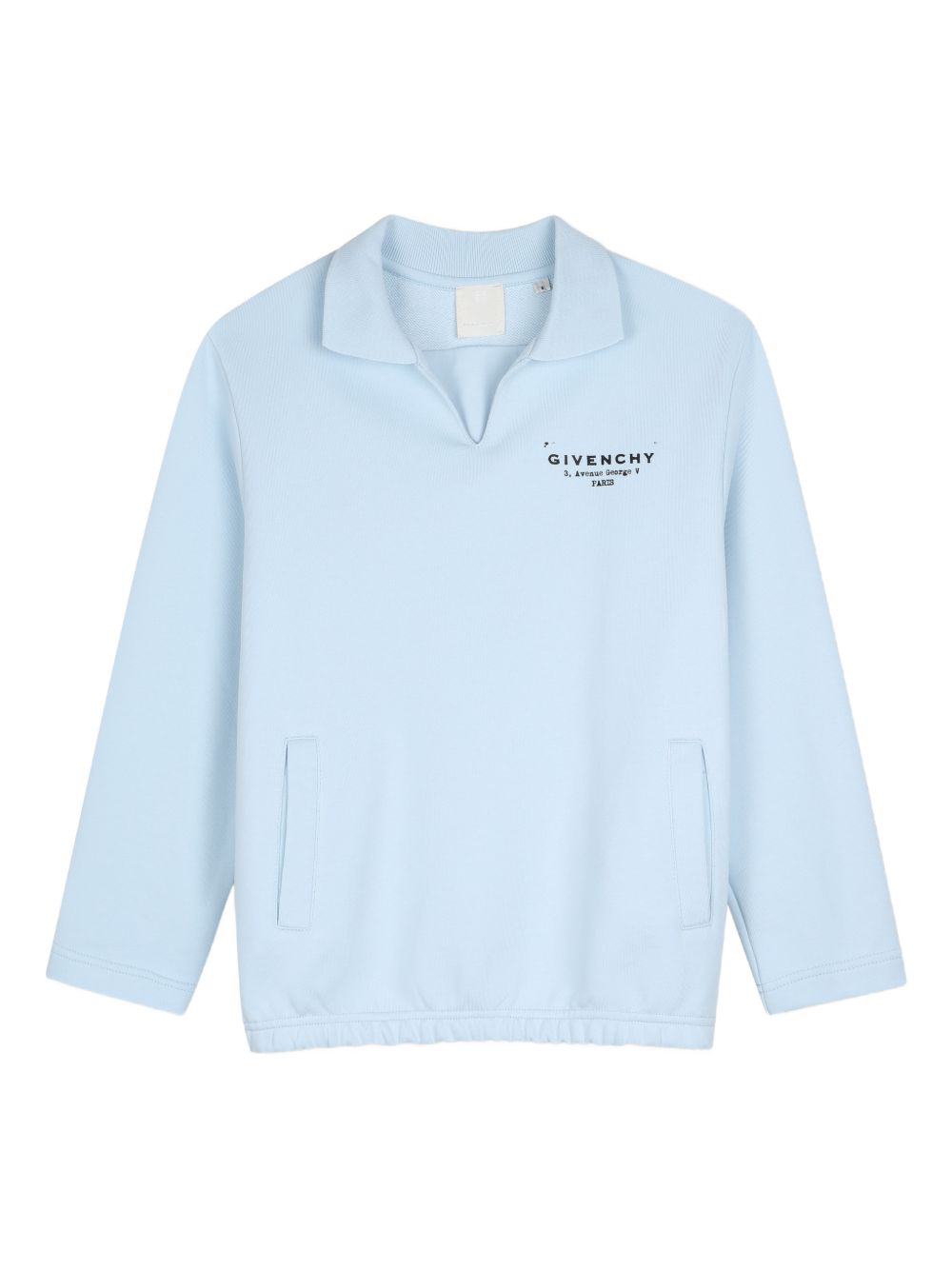 Felpa con stampa, azzurra, maniche lunghe colletto polo orlo elasticizzato tasche a bustina
