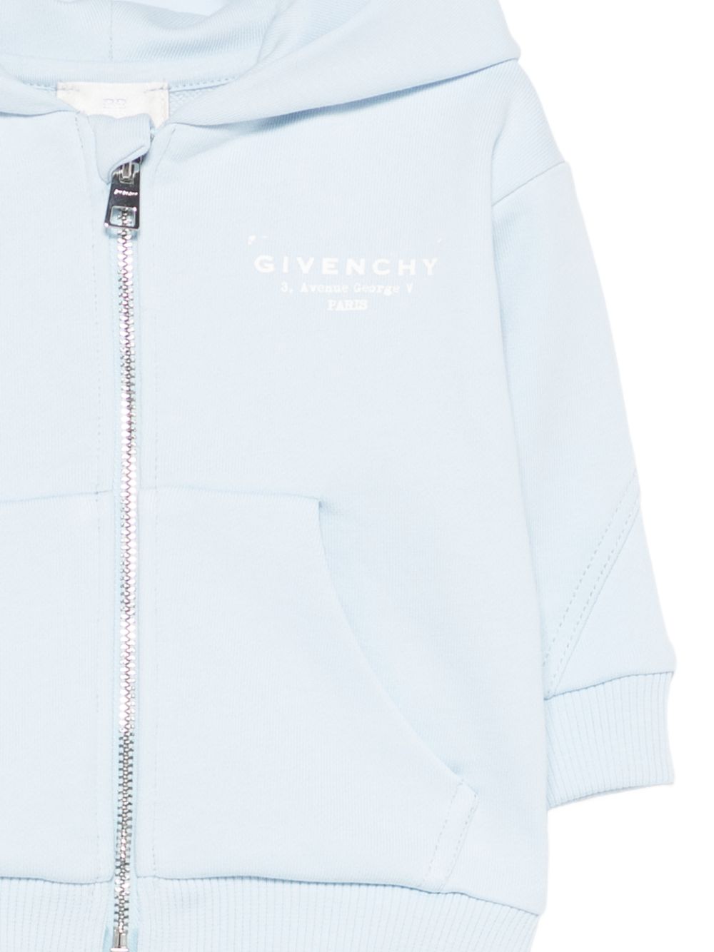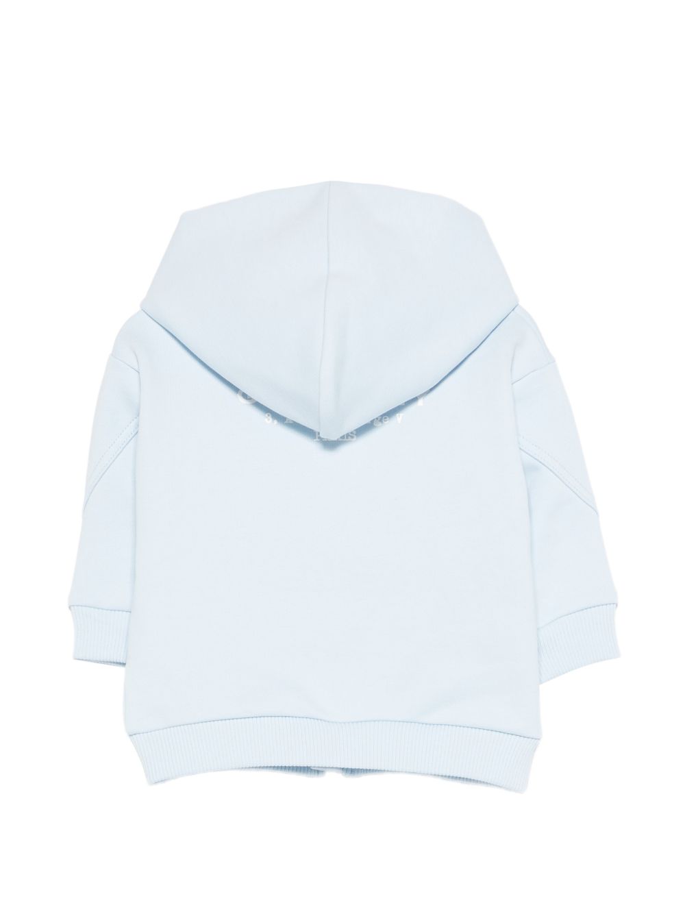 Felpa azzurra con tasca anteriore a marsupio maniche lunghe chiusura con cerniera cappuccio orlo a coste