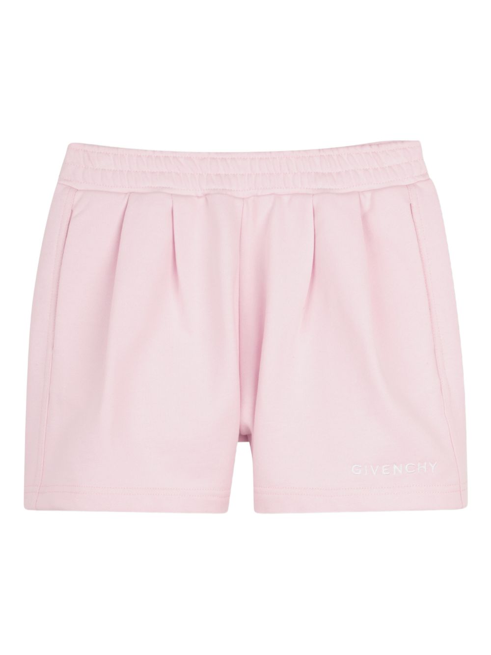 Shorts rosa chiaro in cotone,vita elasticizzata, pieghe sul davanti