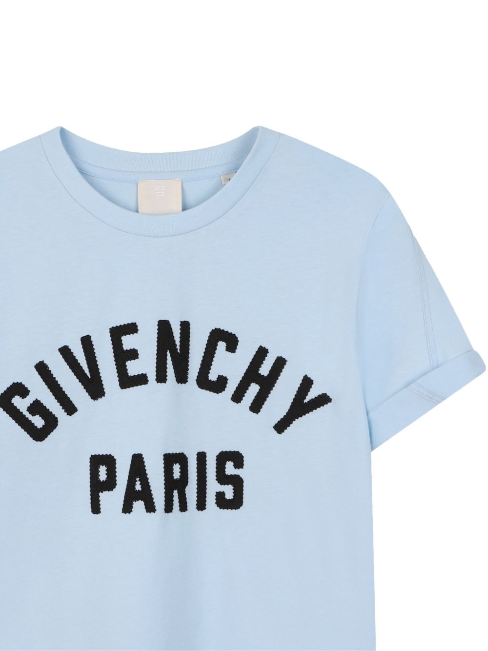 T-shirt azzurro cielo con logo maniche arrotolate scollo tondo