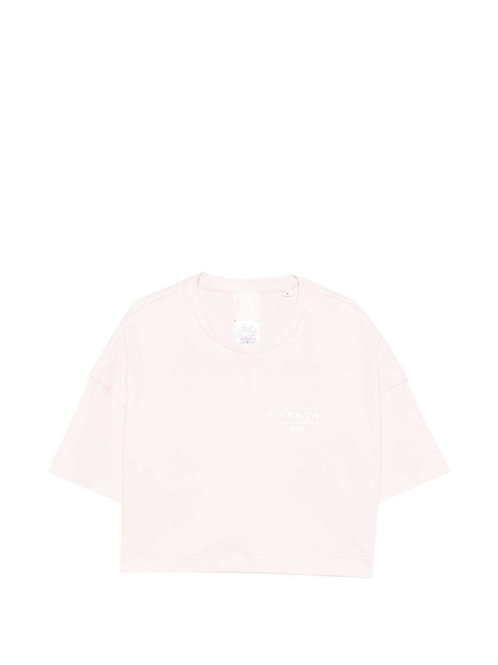 T-shirt girocollo con stampa logo, rosa, maniche corte, cropped