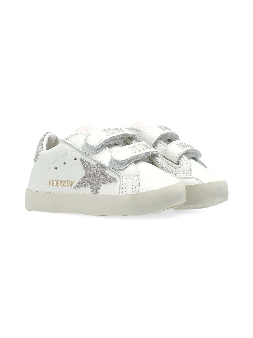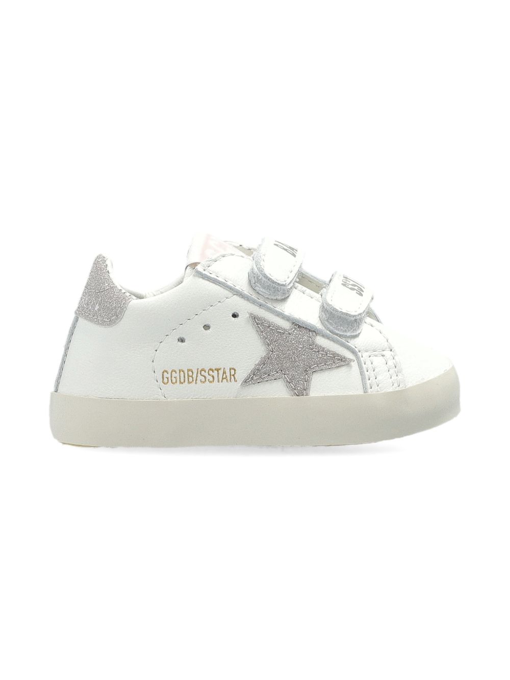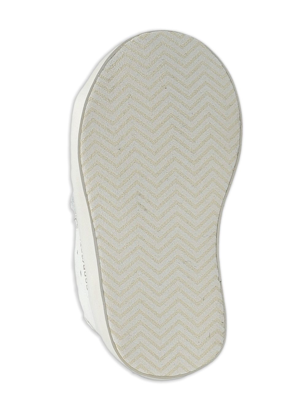 dettaglio glitter bianco applicazione a stella punta tonda chiusura con cinturino a strappo soletta con marchio