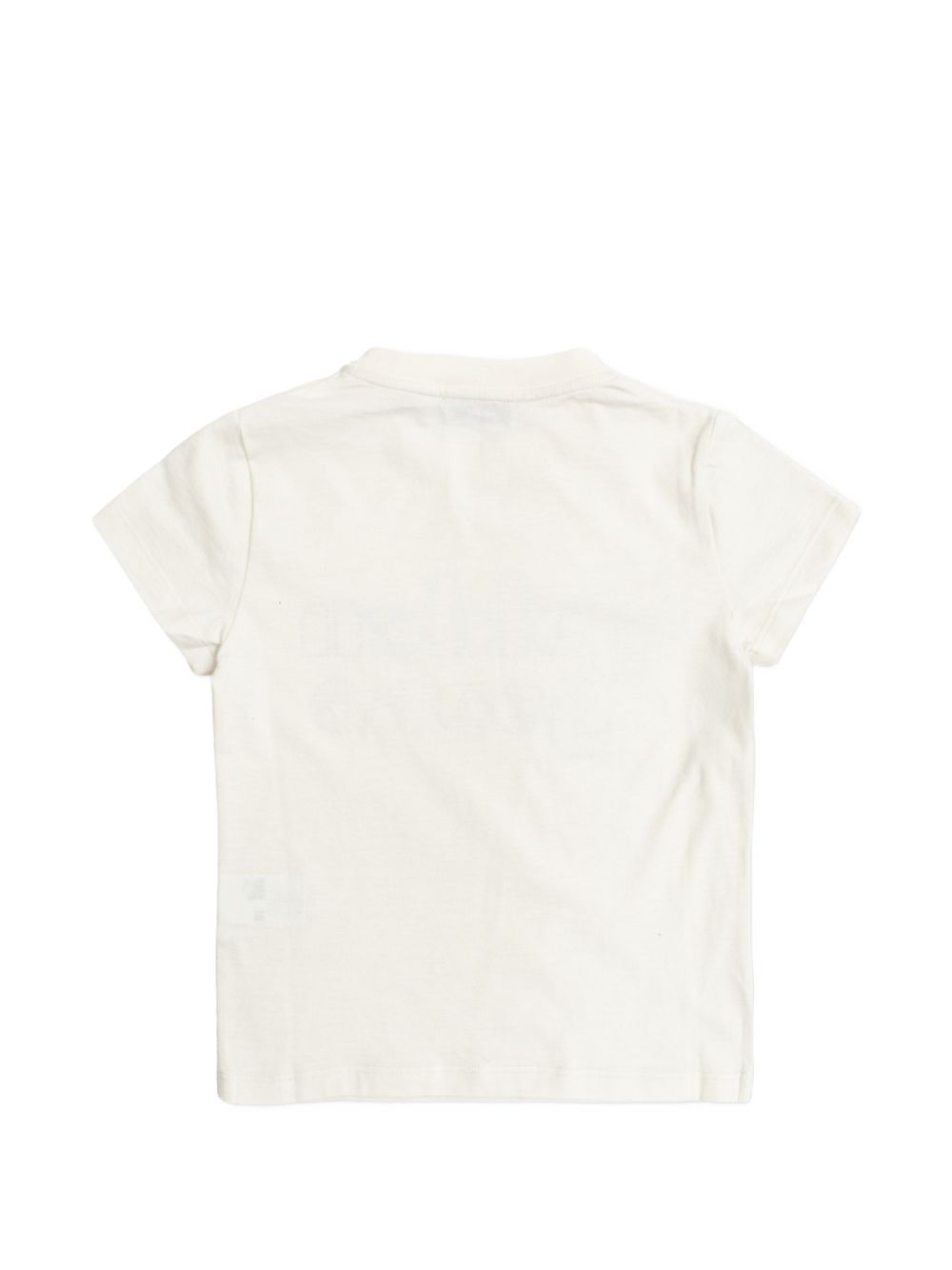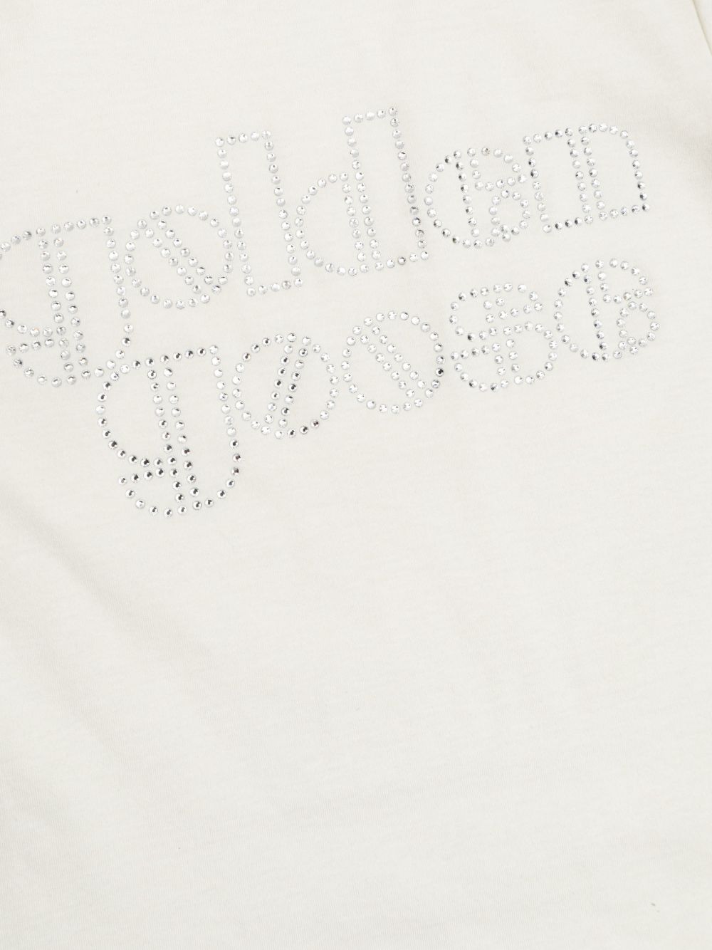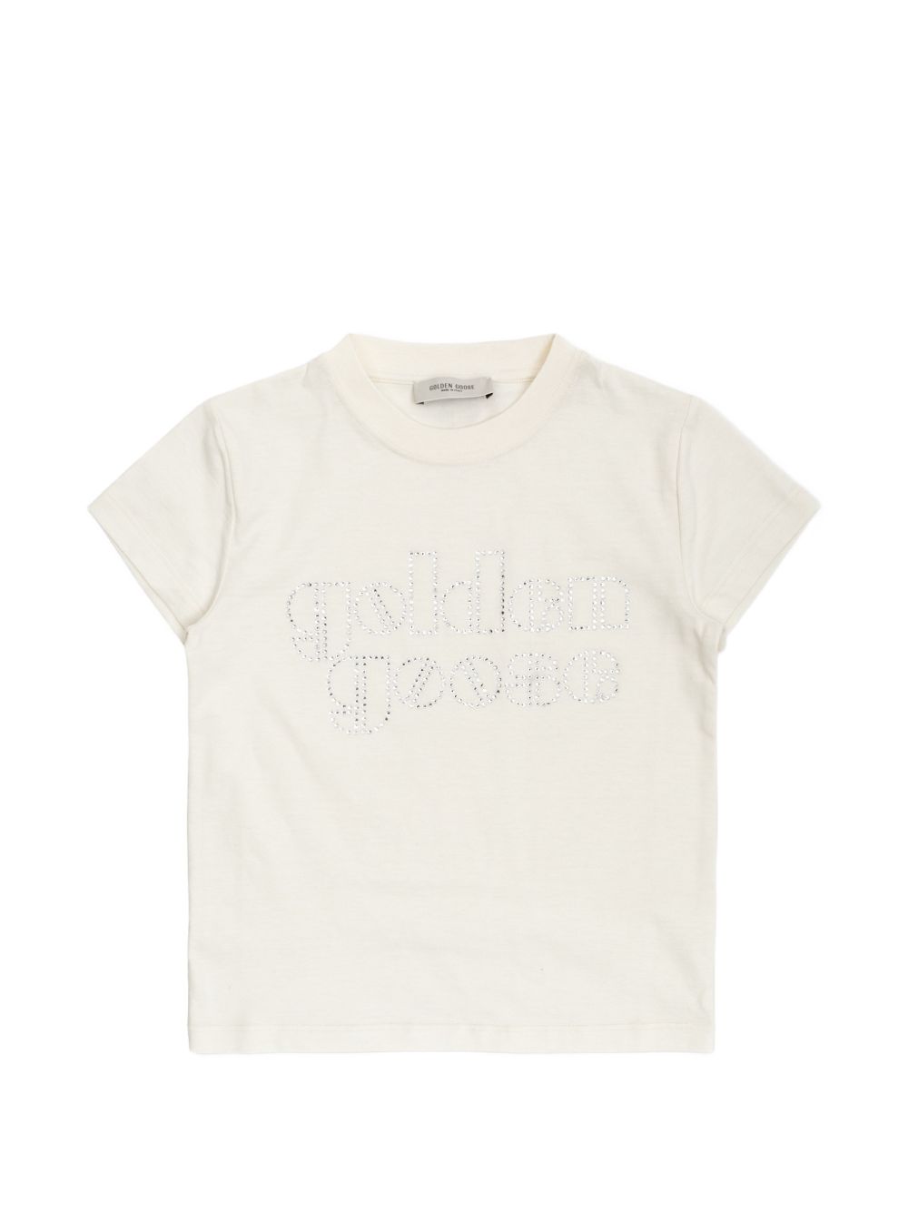 scollo rotondo maniche corte con logo decorato con strass color avorio
