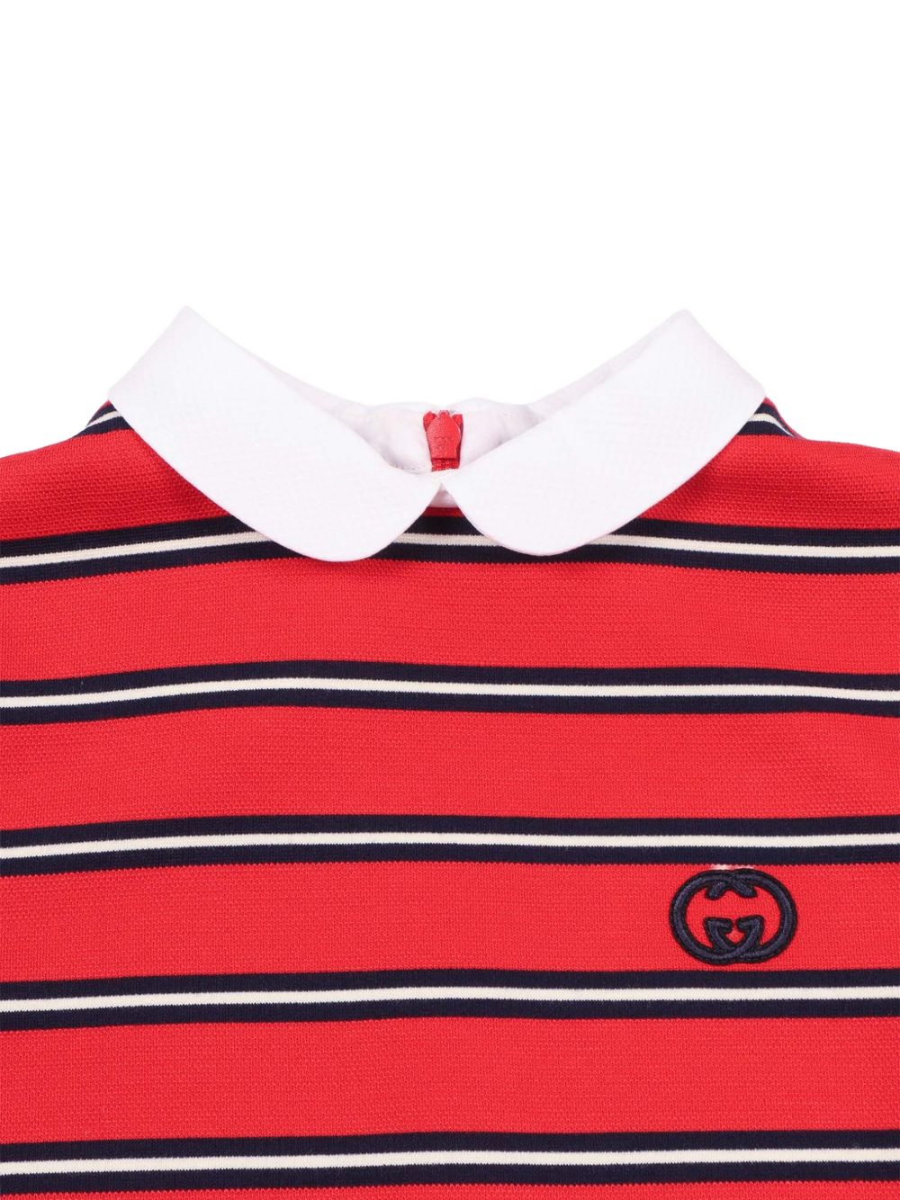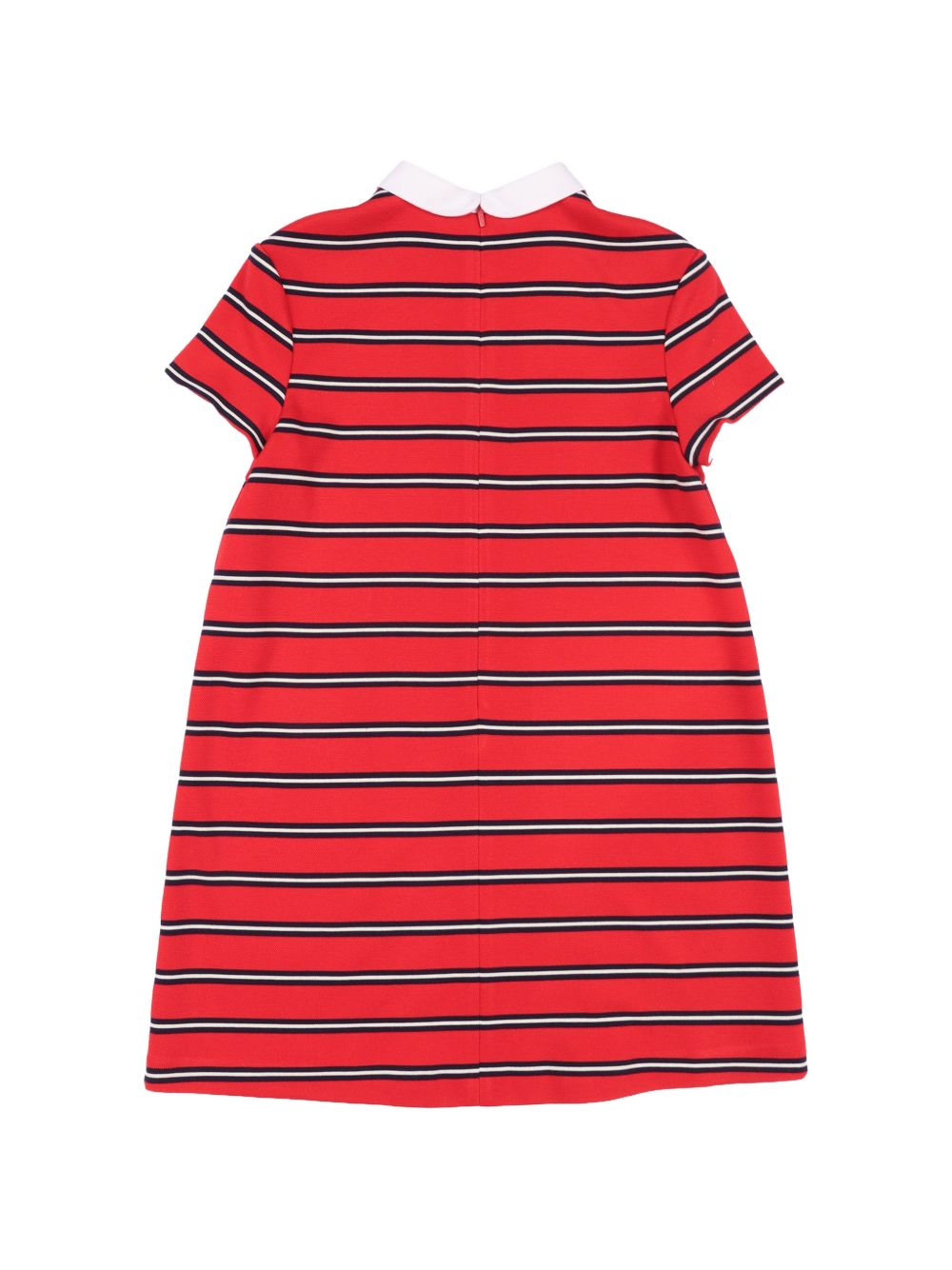 gonna a trapezio a maniche corte con motivo a righe rosse e logo.
