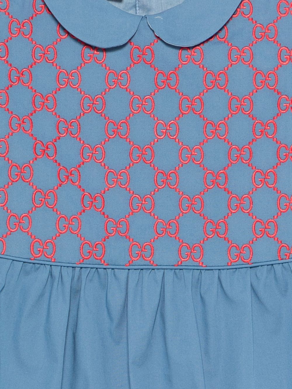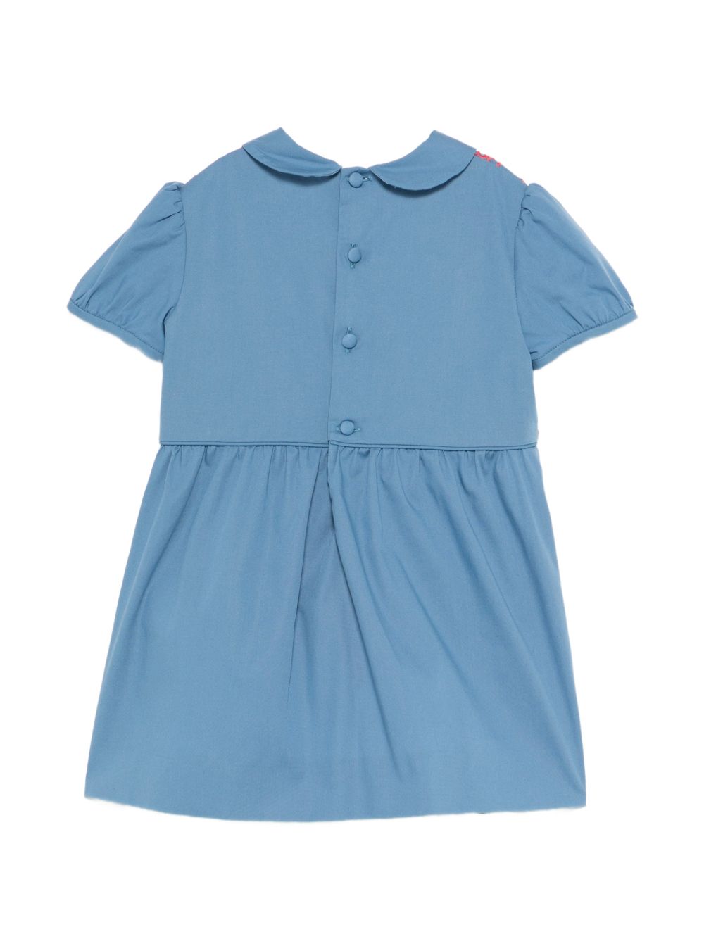 ricamo logo blu colletto Peter Pan maniche corte chiusura con bottoni dettaglio arricciato
