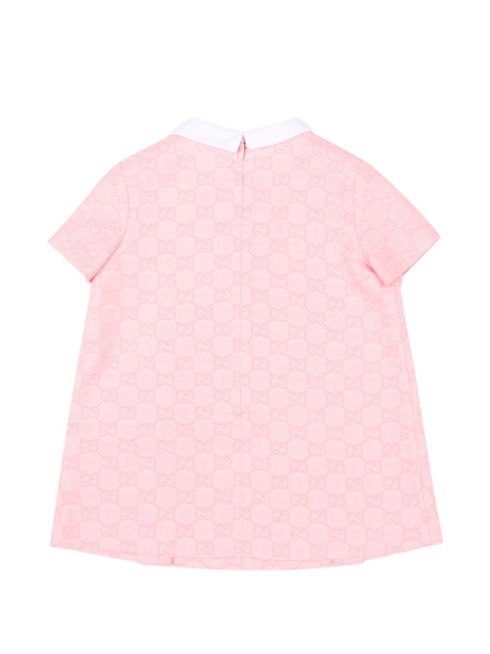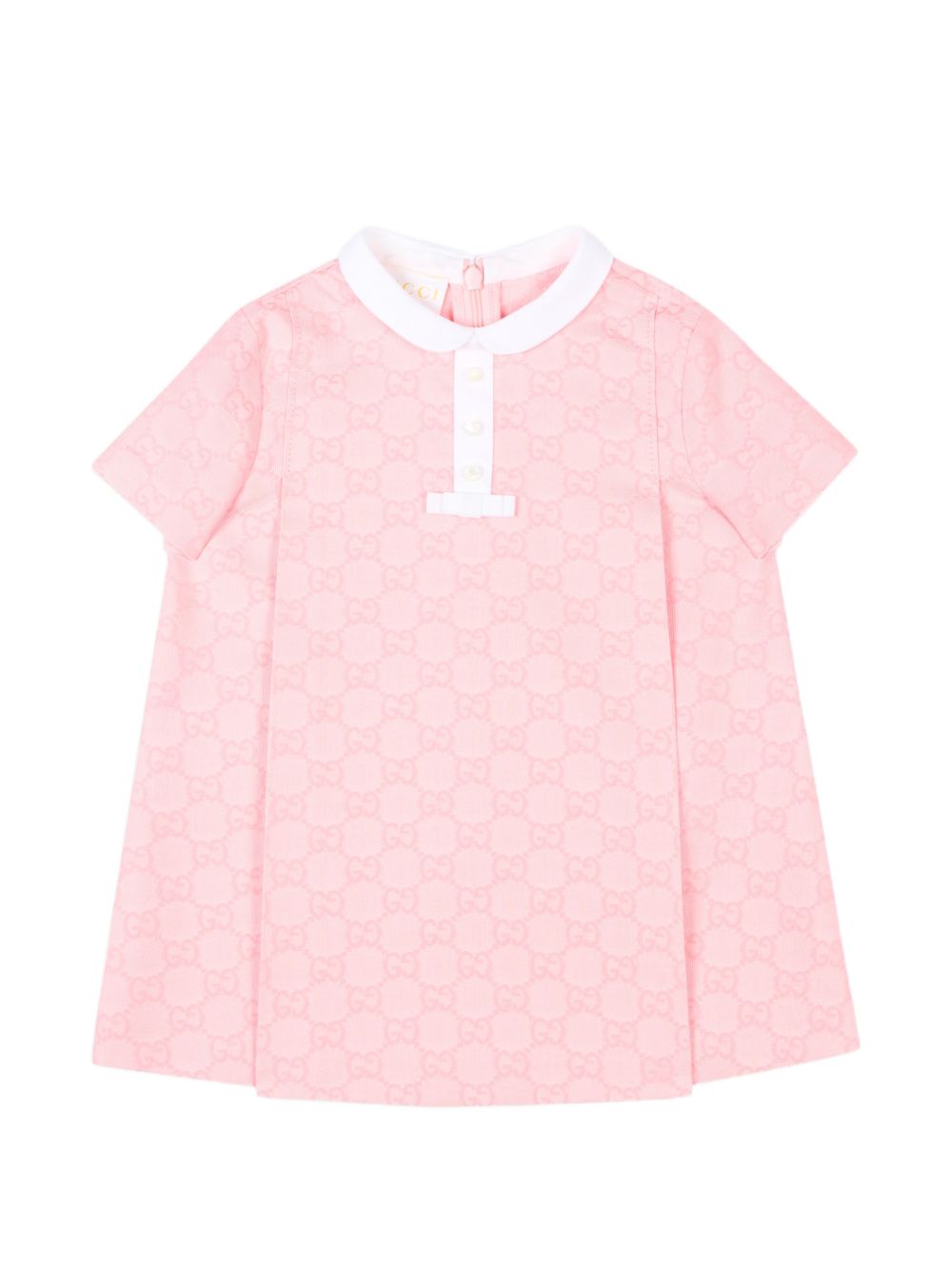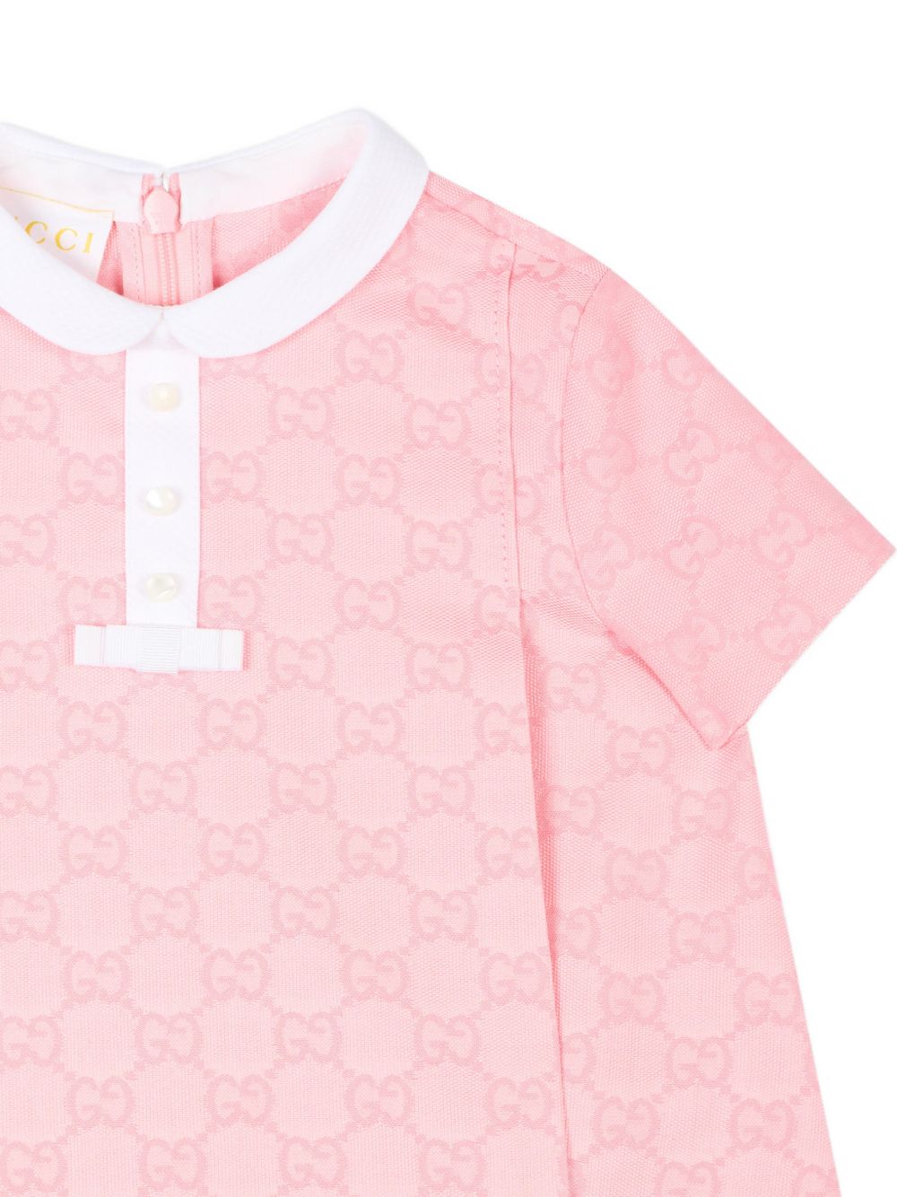 Maglia a maniche corte in cotone rosa con logo all-over e colletto, chiusura con bottoni sul davanti.