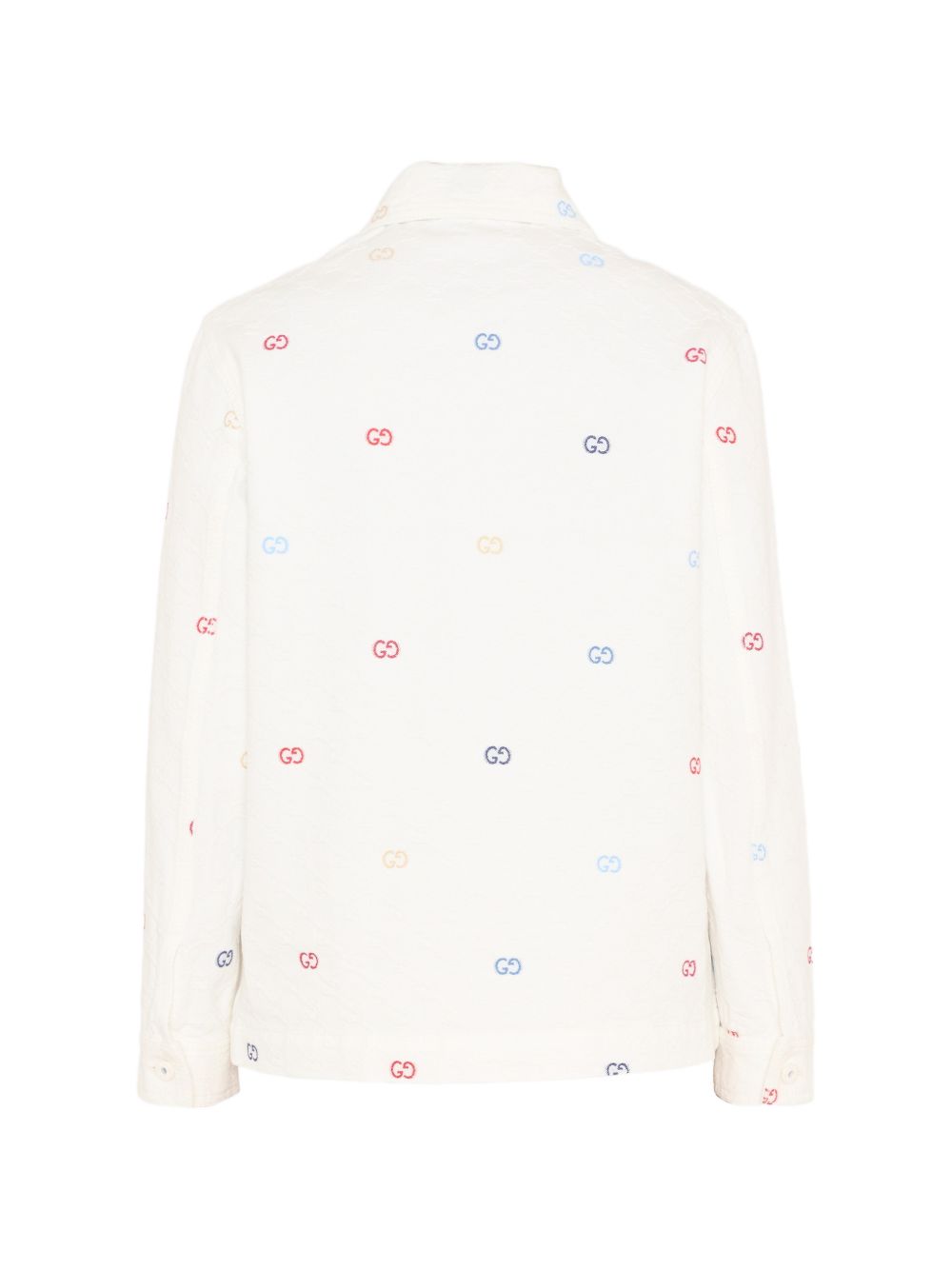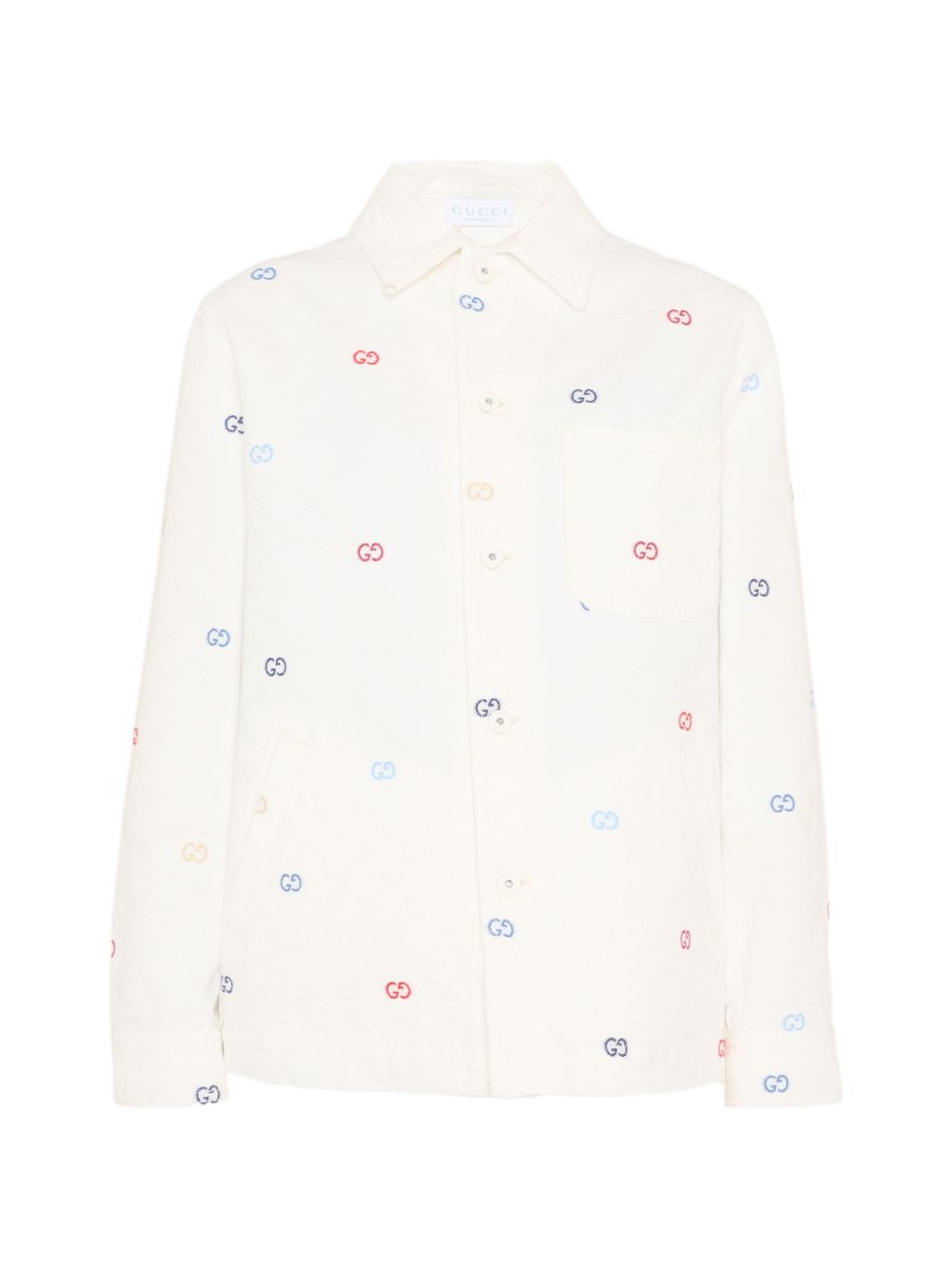 cotone bianco, logo ricamato, taschino sul petto, chiusura con bottoni, maniche lunghe
