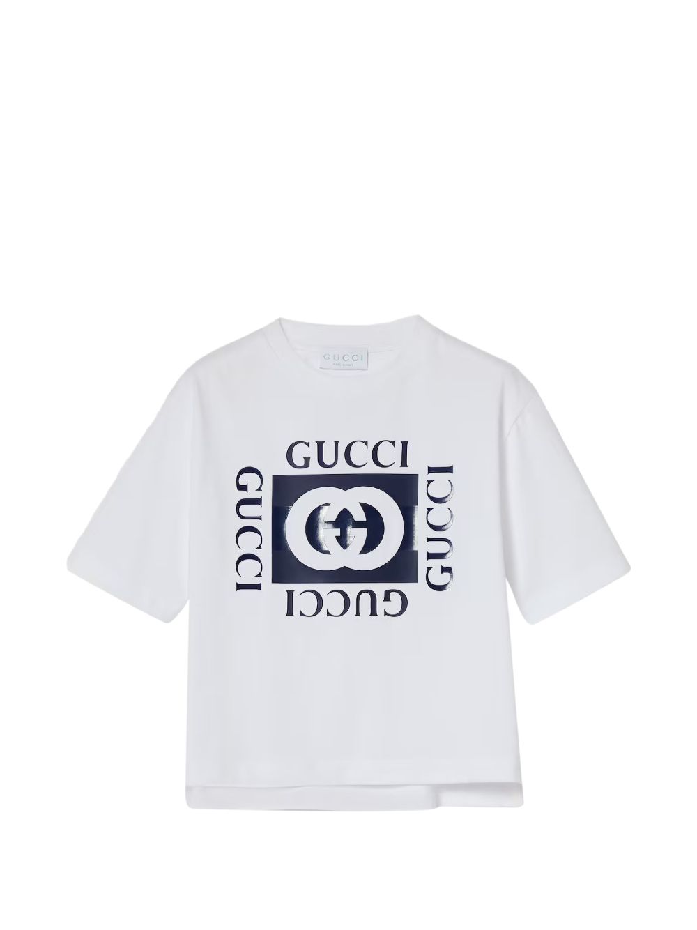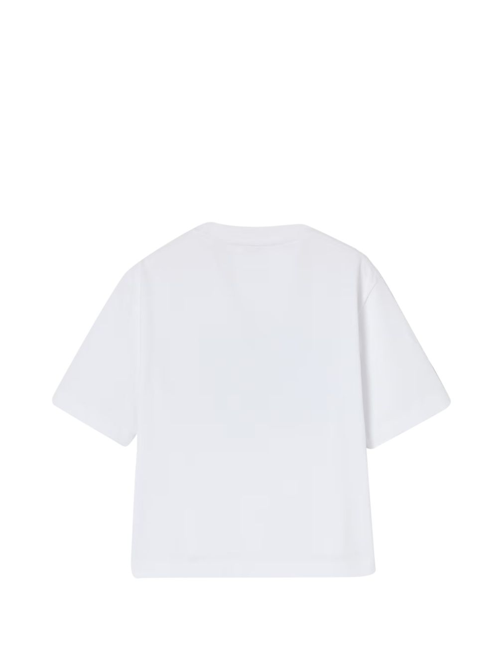 Girocollo, maniche corte, orlo dritto, stampa logo bianca