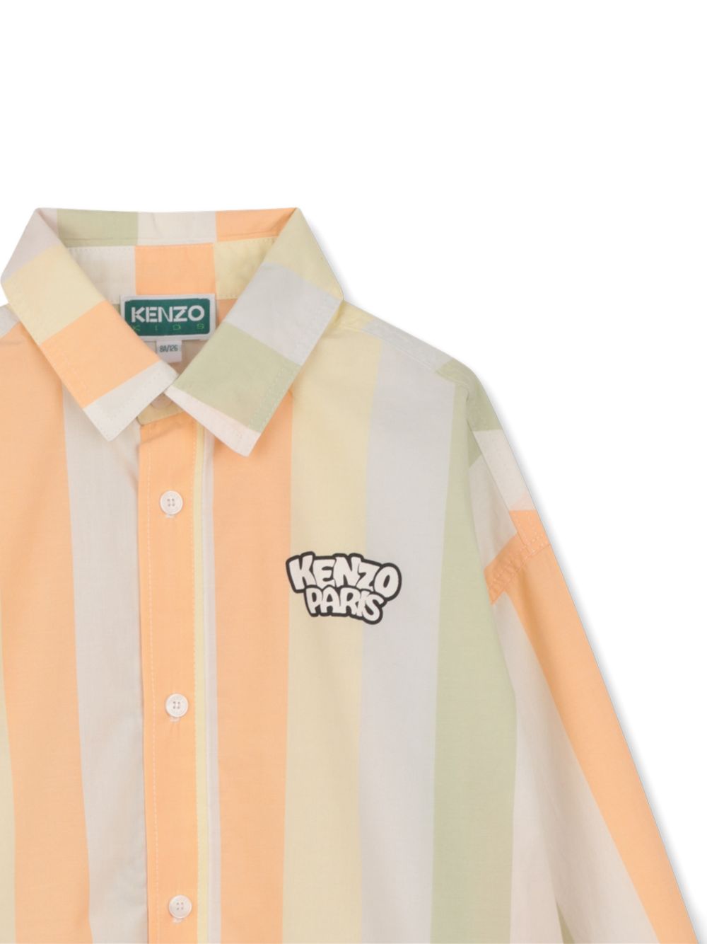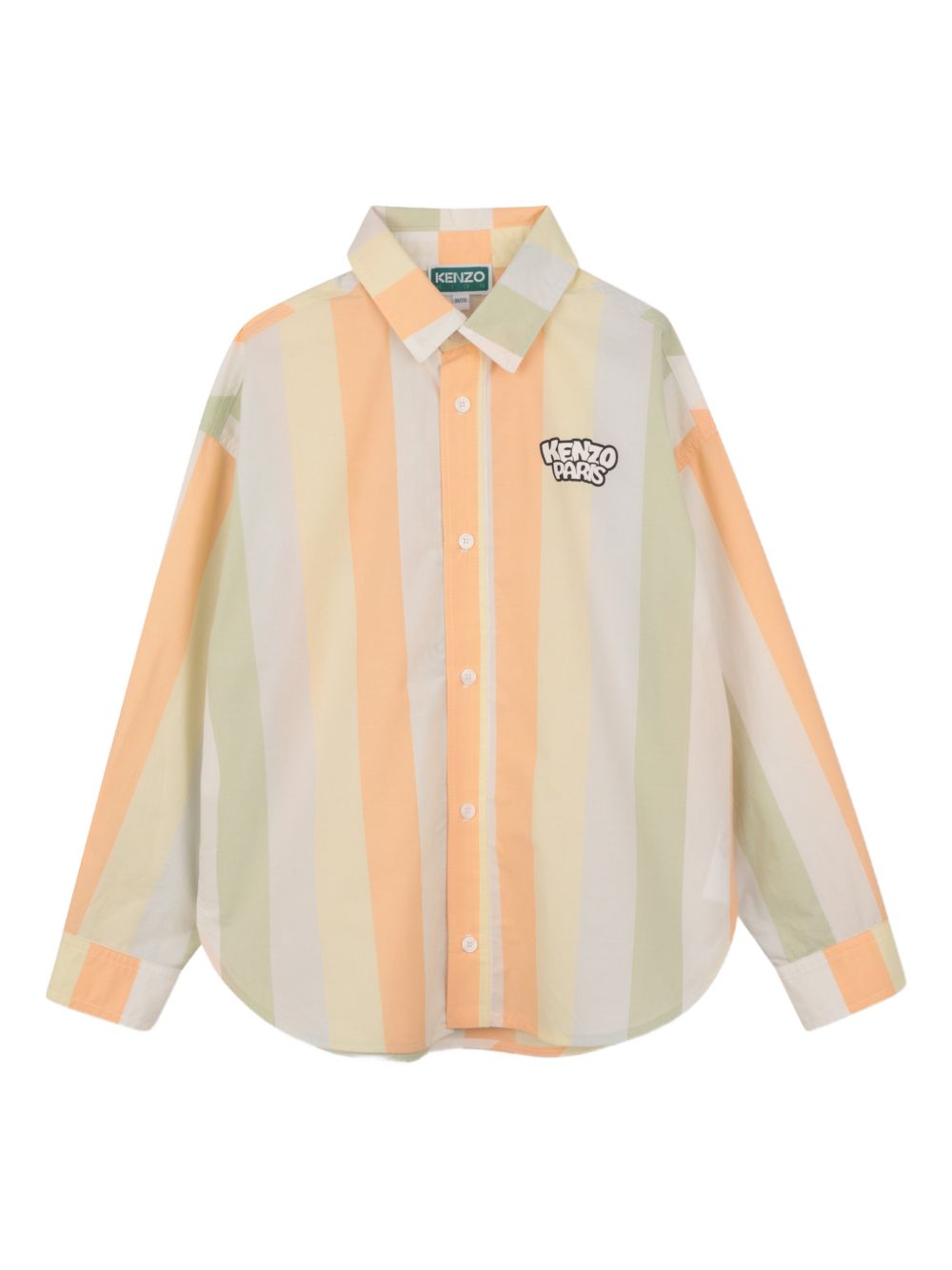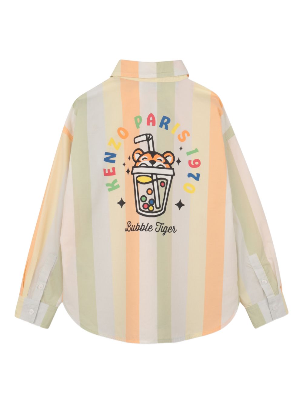 Camicia a righe beige e arancioni chiusura con bottoni maniche lunghe stampa posteriore