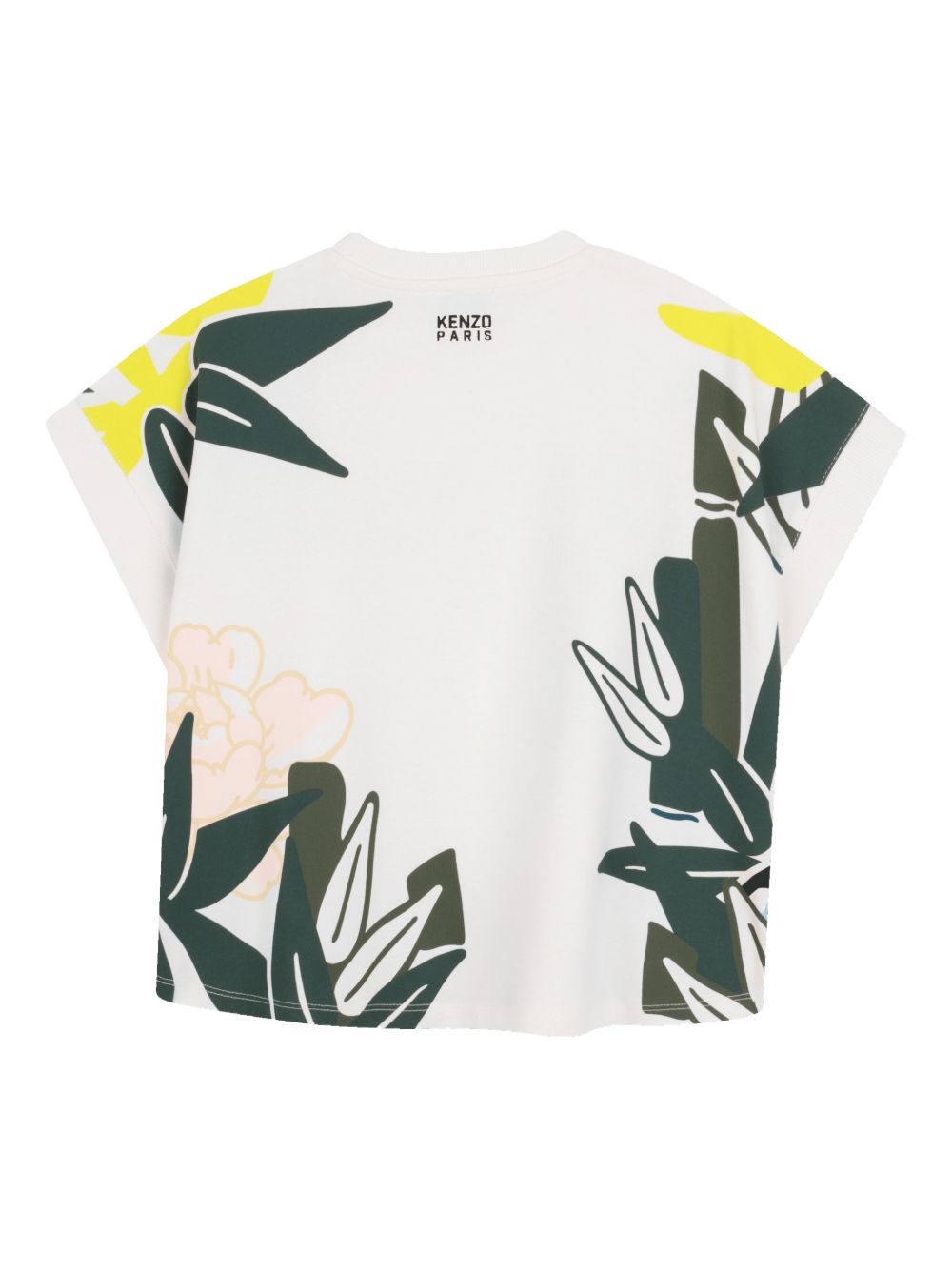 T-shirt girocollo maniche corte in cotone con stampa floreale bianca ed elefante
