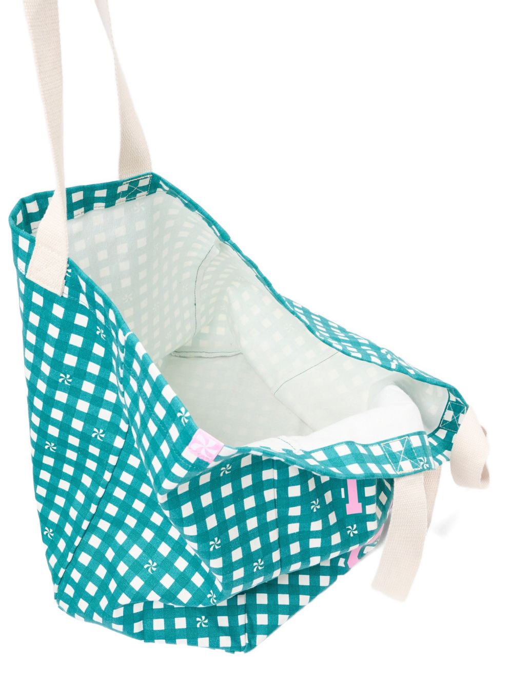 Borsa con manici a quadretti bianco e verde