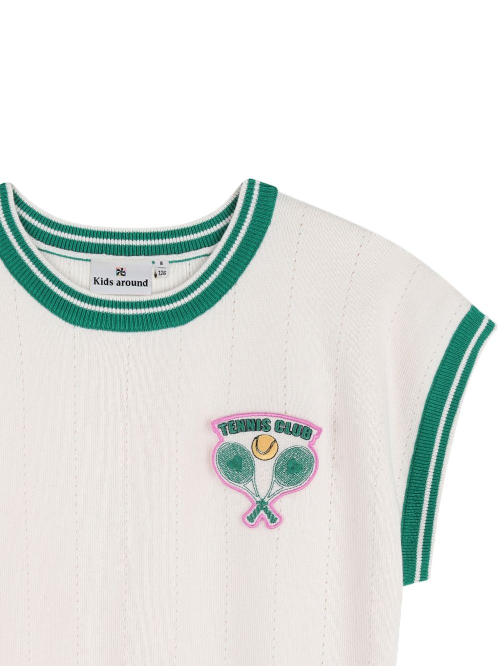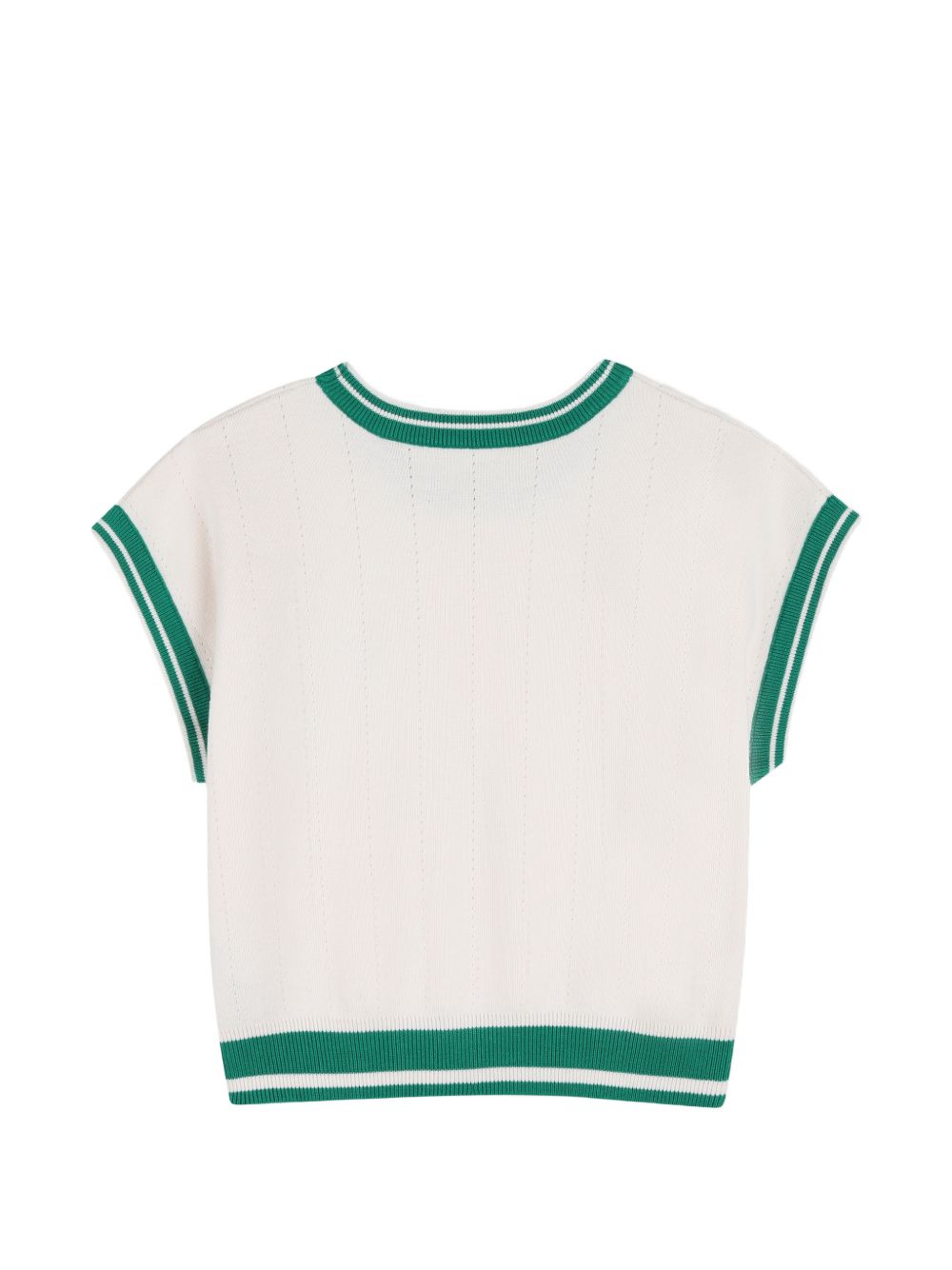 T-shirt girocollo senza maniche con orlo dritto e rifiniture a righe beige