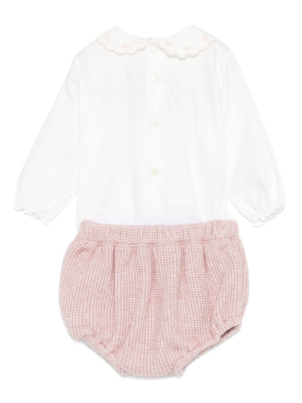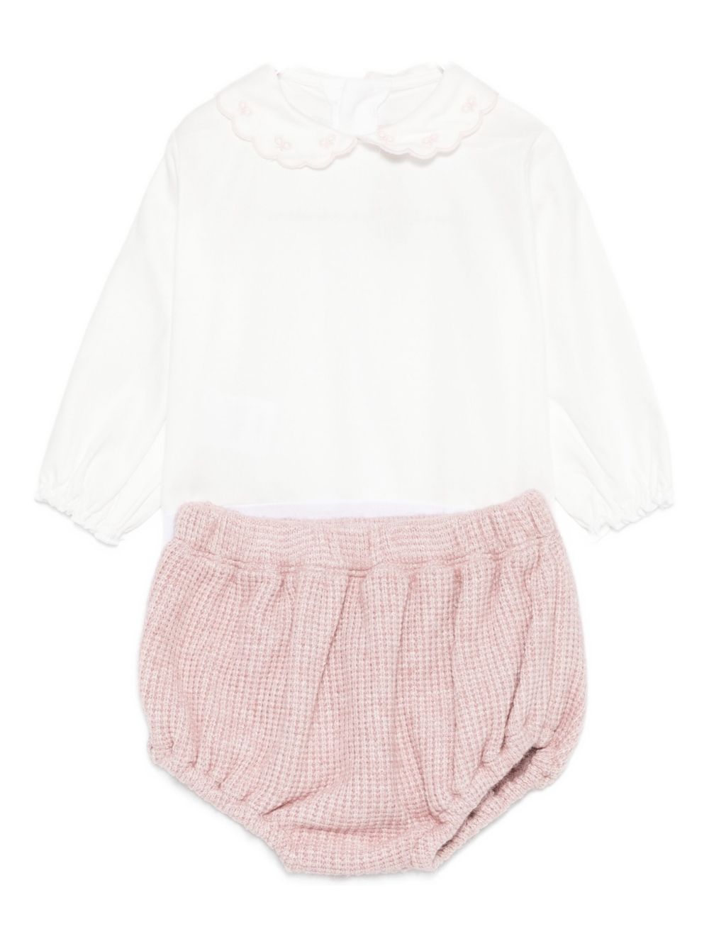 Baby set composto da body con colletto a smerlo, maniche lunghe e coulotte