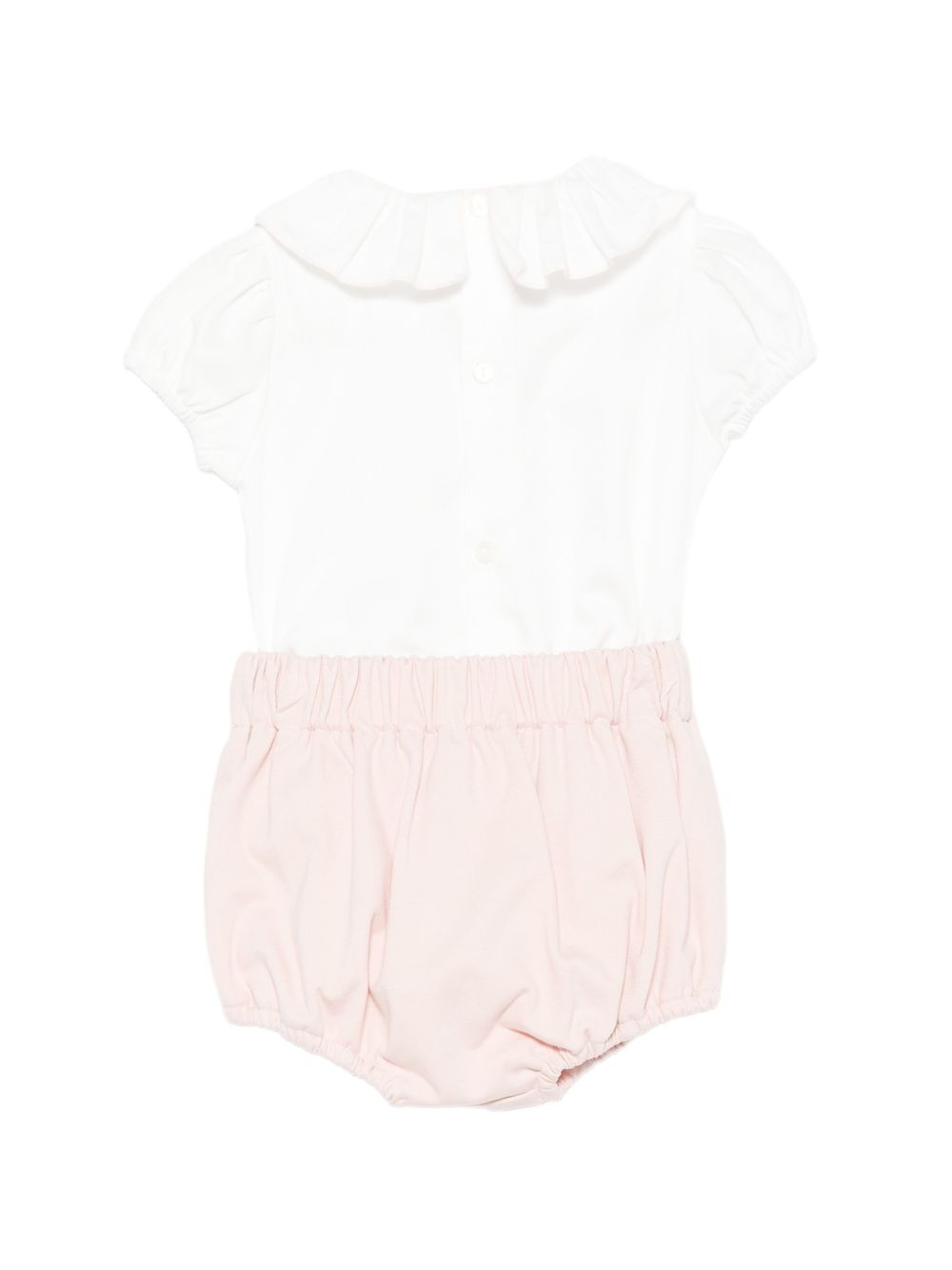 Baby set composto da bosy con rouches bianco e coulotte con fiocco a fiori