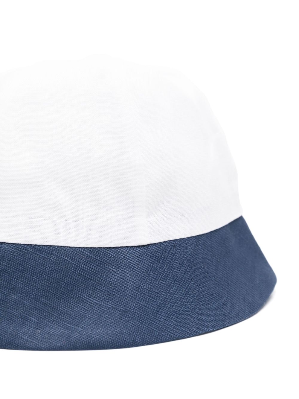 Cappello con orlo a contrasto, bianco e blu, corona rotonda, tesa larga, lino e cotone