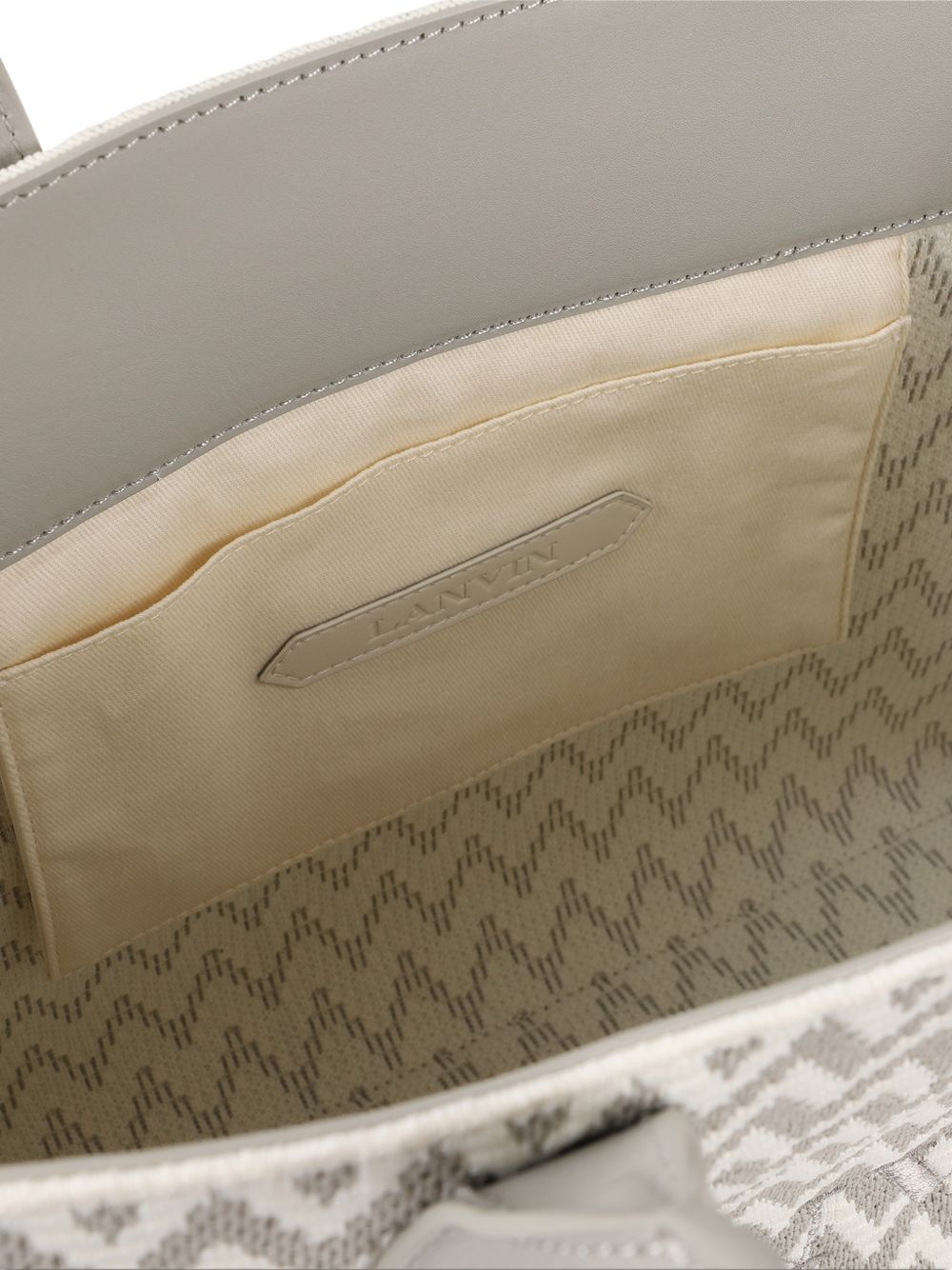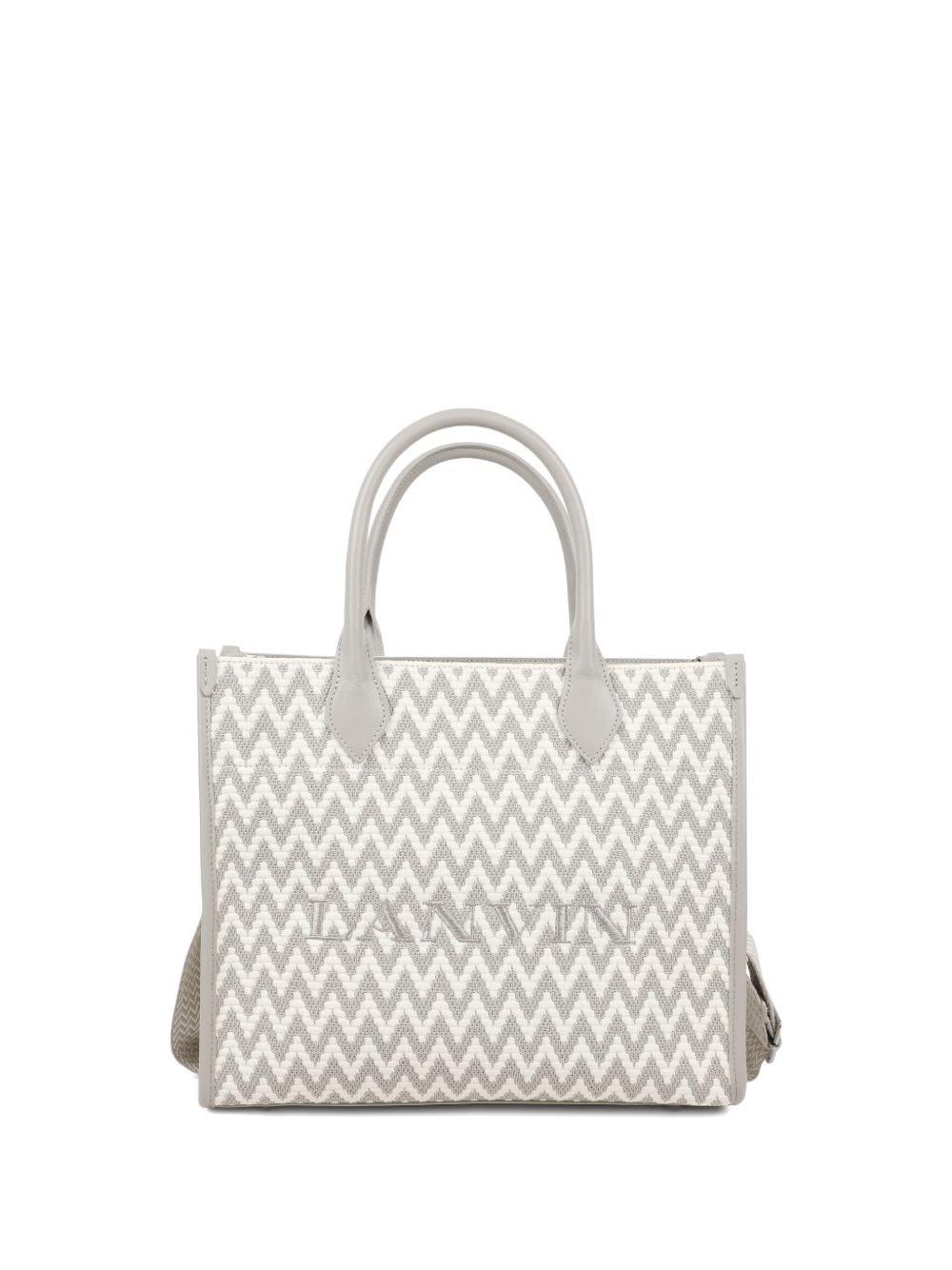 Borsa con motivo a zigzag grigio chiaro, logo ricamato, manici superiori, tracolla staccabile, tasca interna a bustina