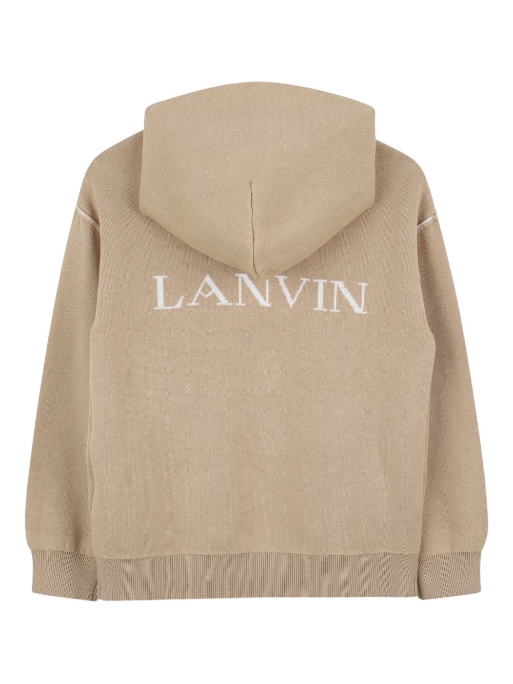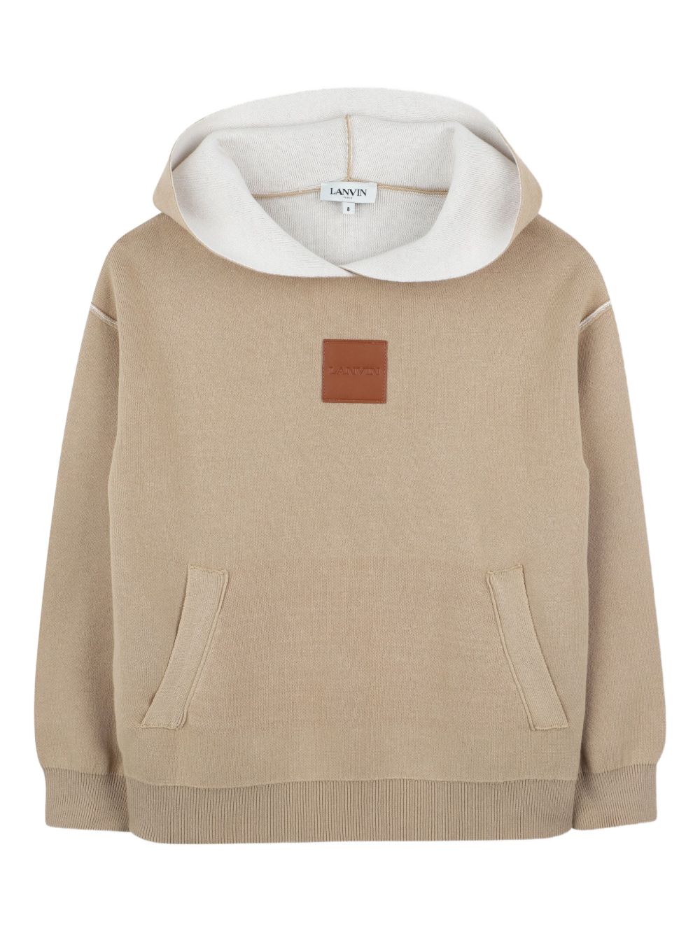 Felpa con toppa con logo beige sul petto, scritta con logo sul retro, tasca a marsupio, fodera del cappuccio a contrasto, polsini e orlo a coste.