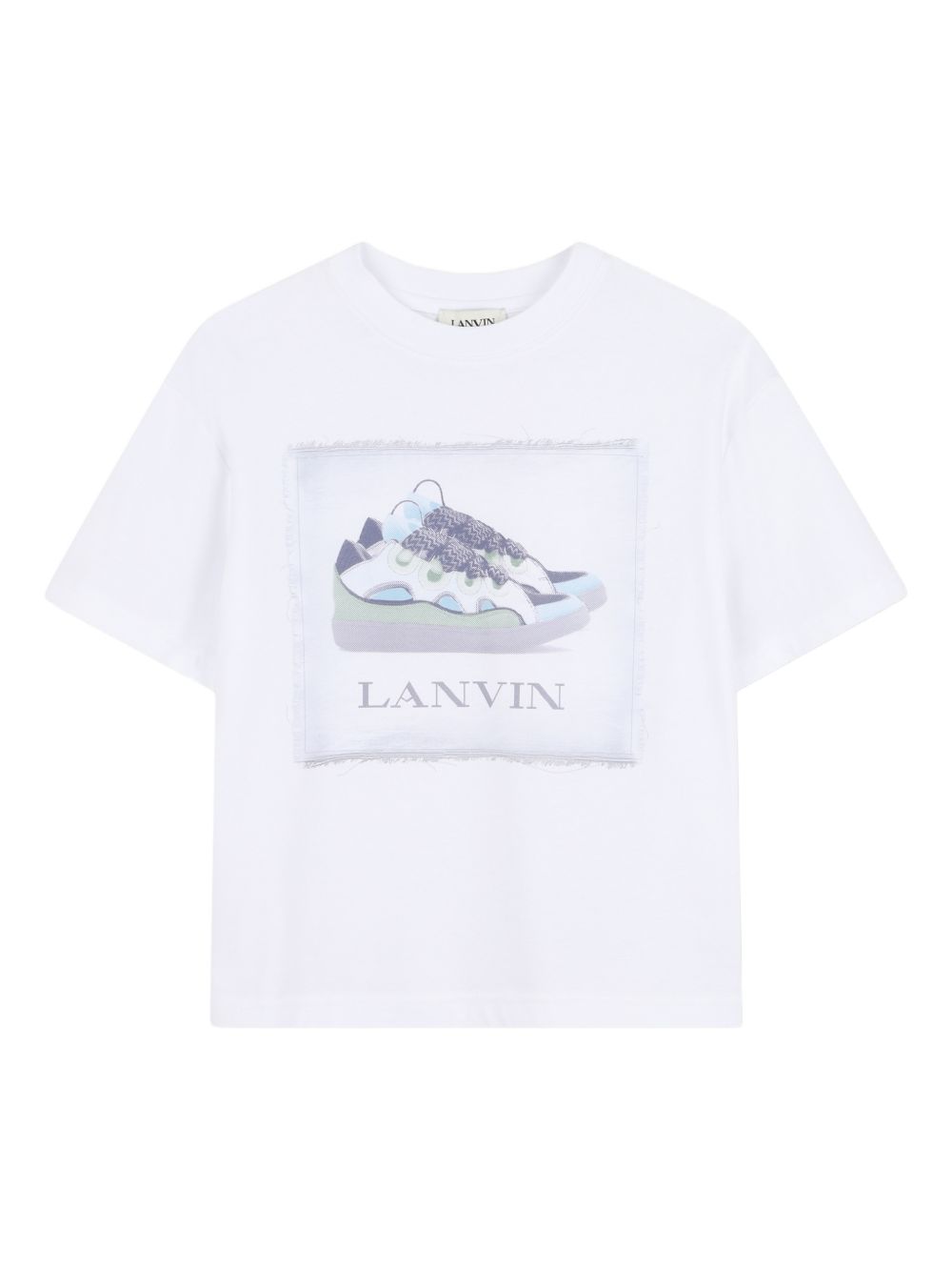 T-shirt con stampa grafica bianca maniche corte scollo rotondo orlo dritto