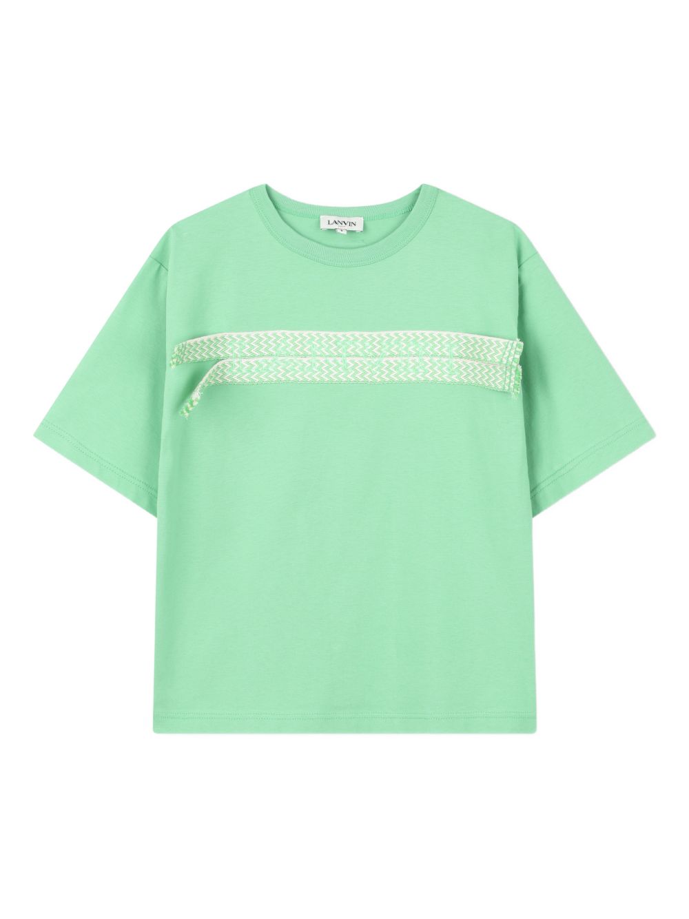 T-shirt girocollo a maniche corte con finiture in tessuto verde