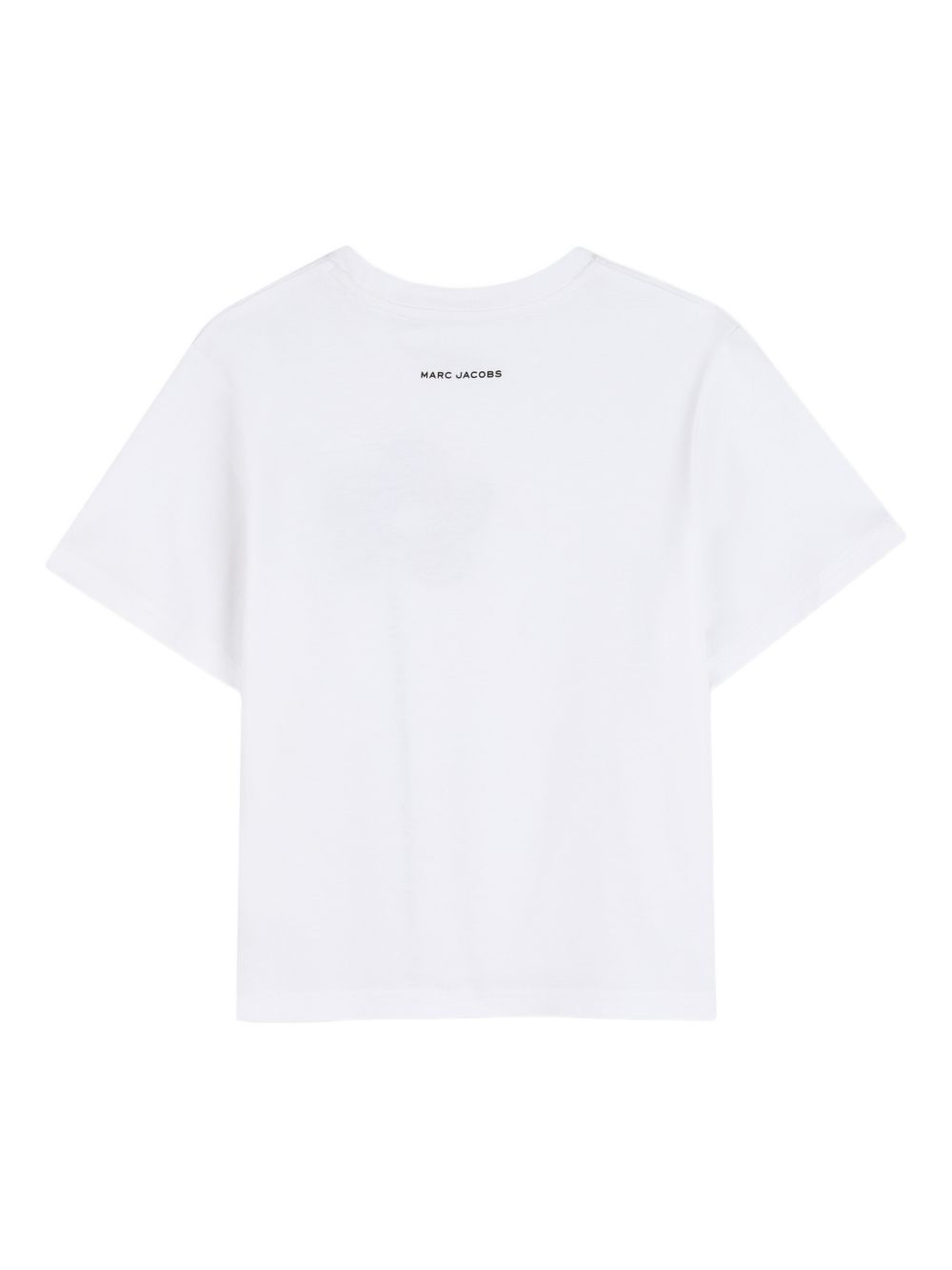 T-shirt bianca con applicazione di fiori, scollo tondo maniche corte