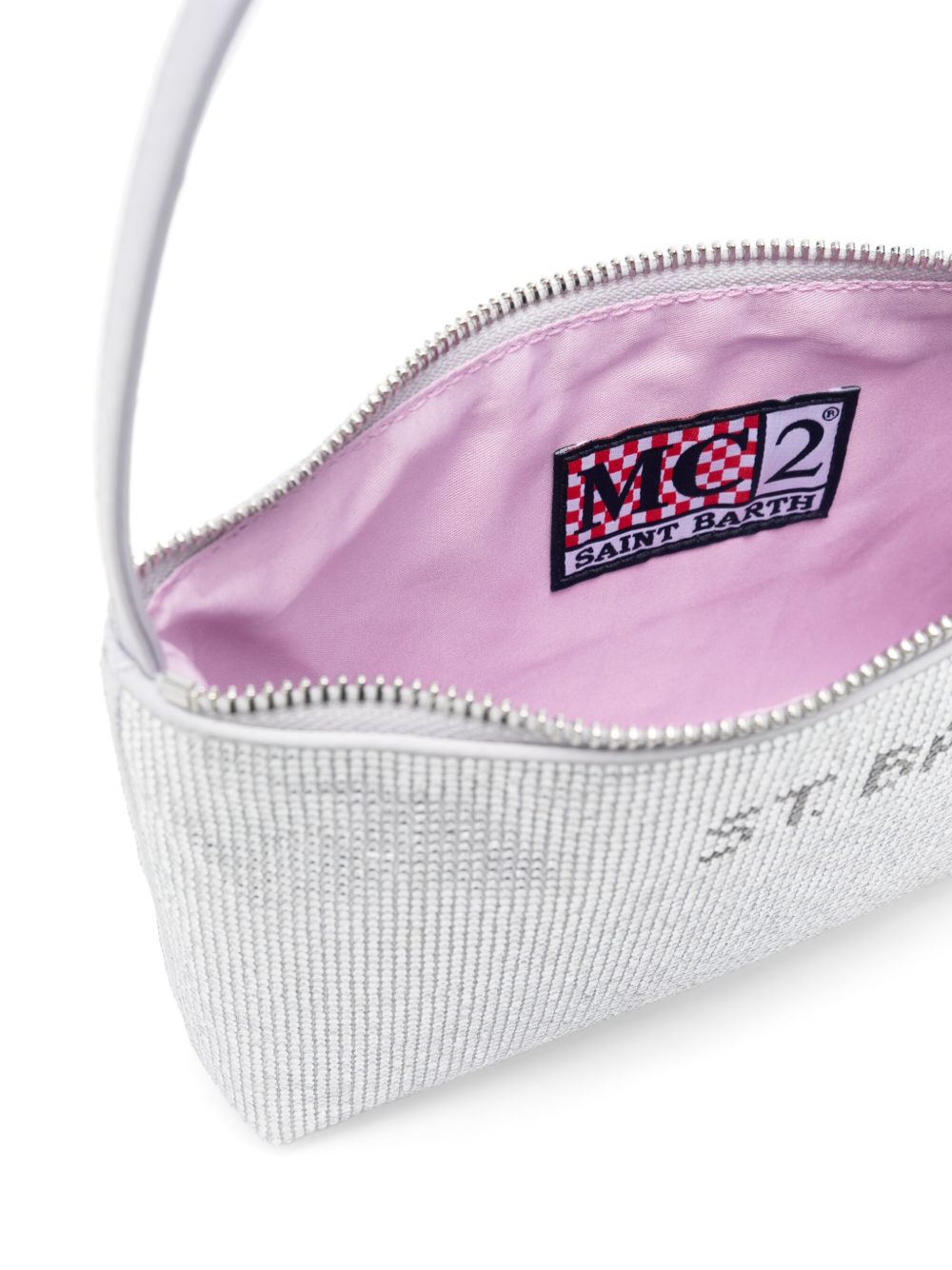 Borsa con chiusura con cerniera, tracolla singola, decorazioni in cristallo, logo, scomparto principale, toppa interna con logo, fodera completa.