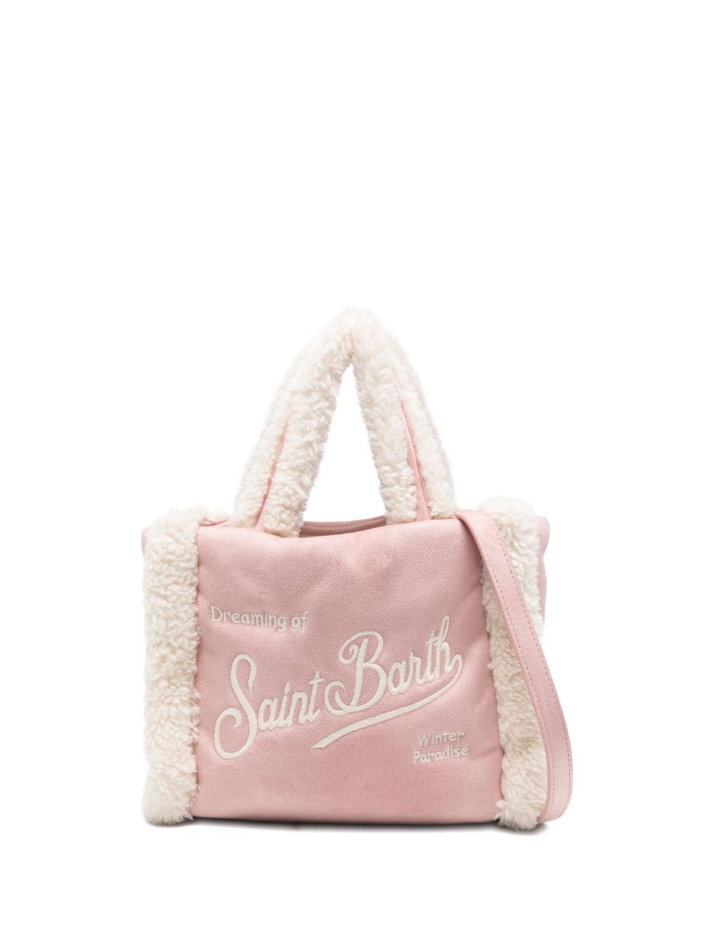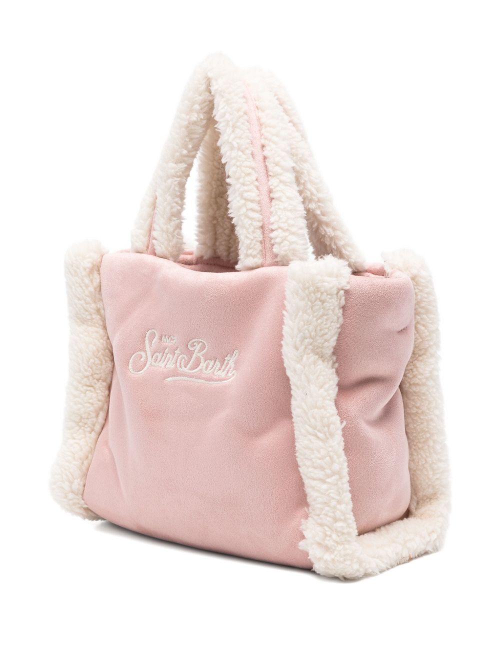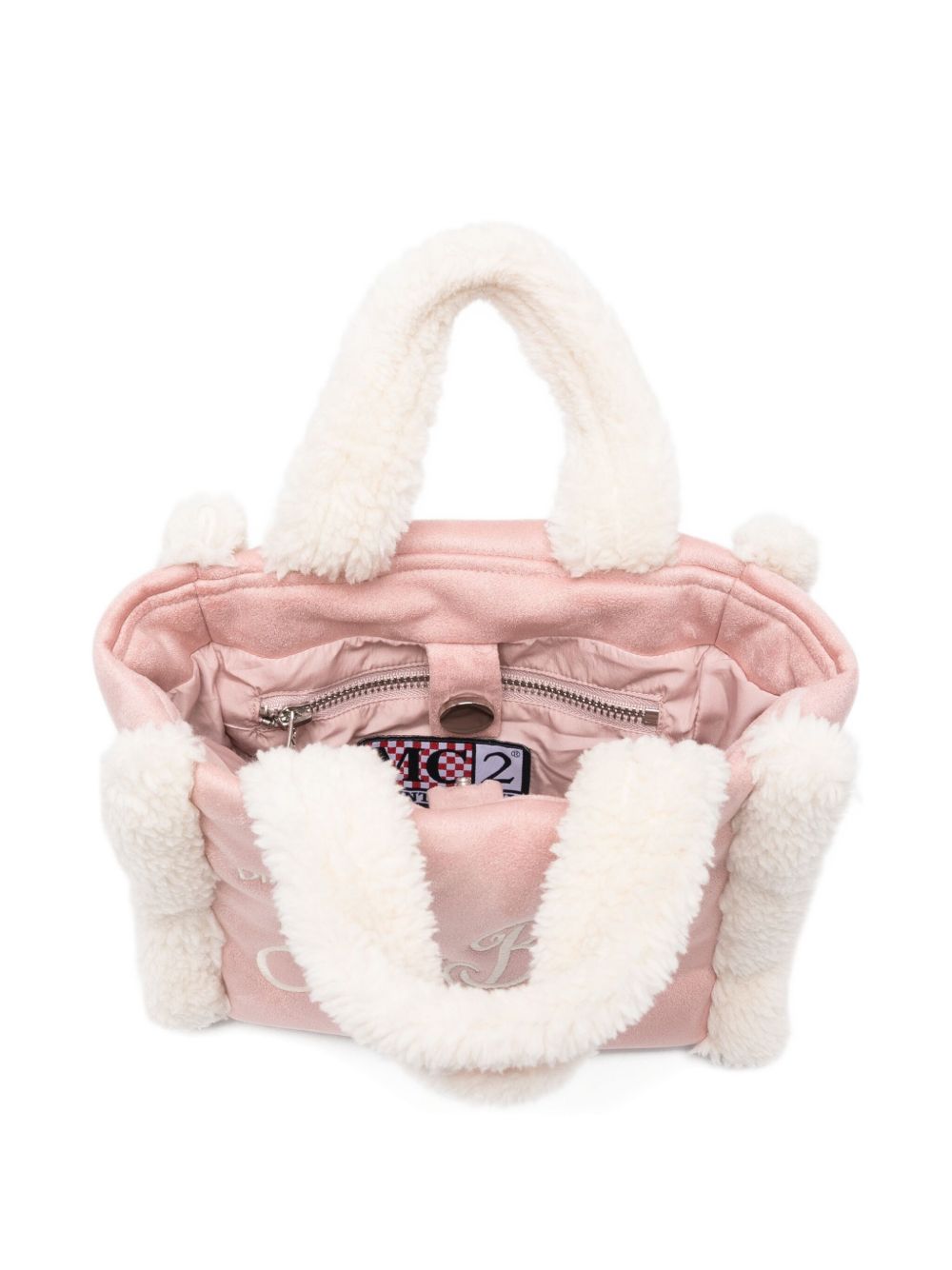 Borsa tote in pelliccia sintetica, rosa chiaro, due manici, tracolla, chiusura posteriore con zip