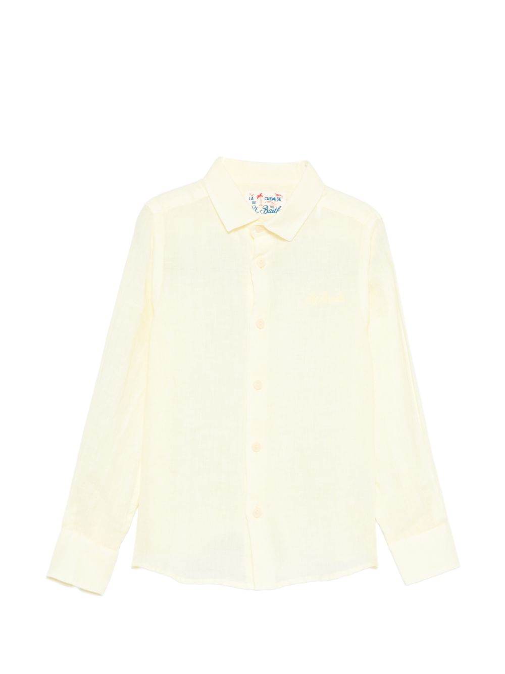 Camicia giallo, design con abbottonatura, logo ricamato, maniche lunghe, orli con abbottonatura, colletto classico.