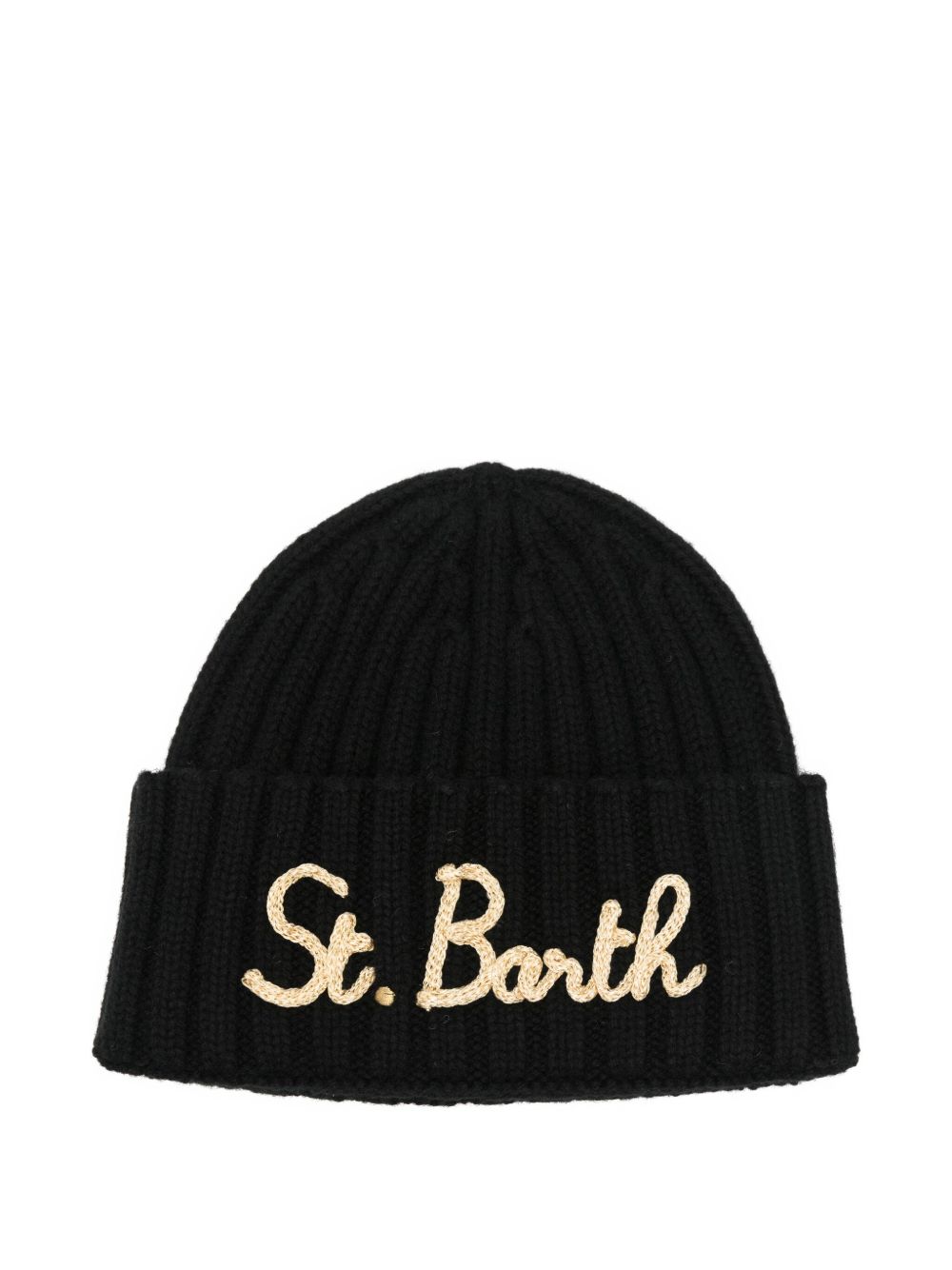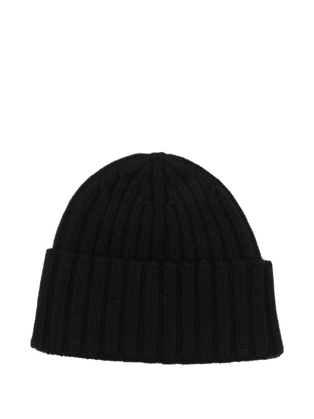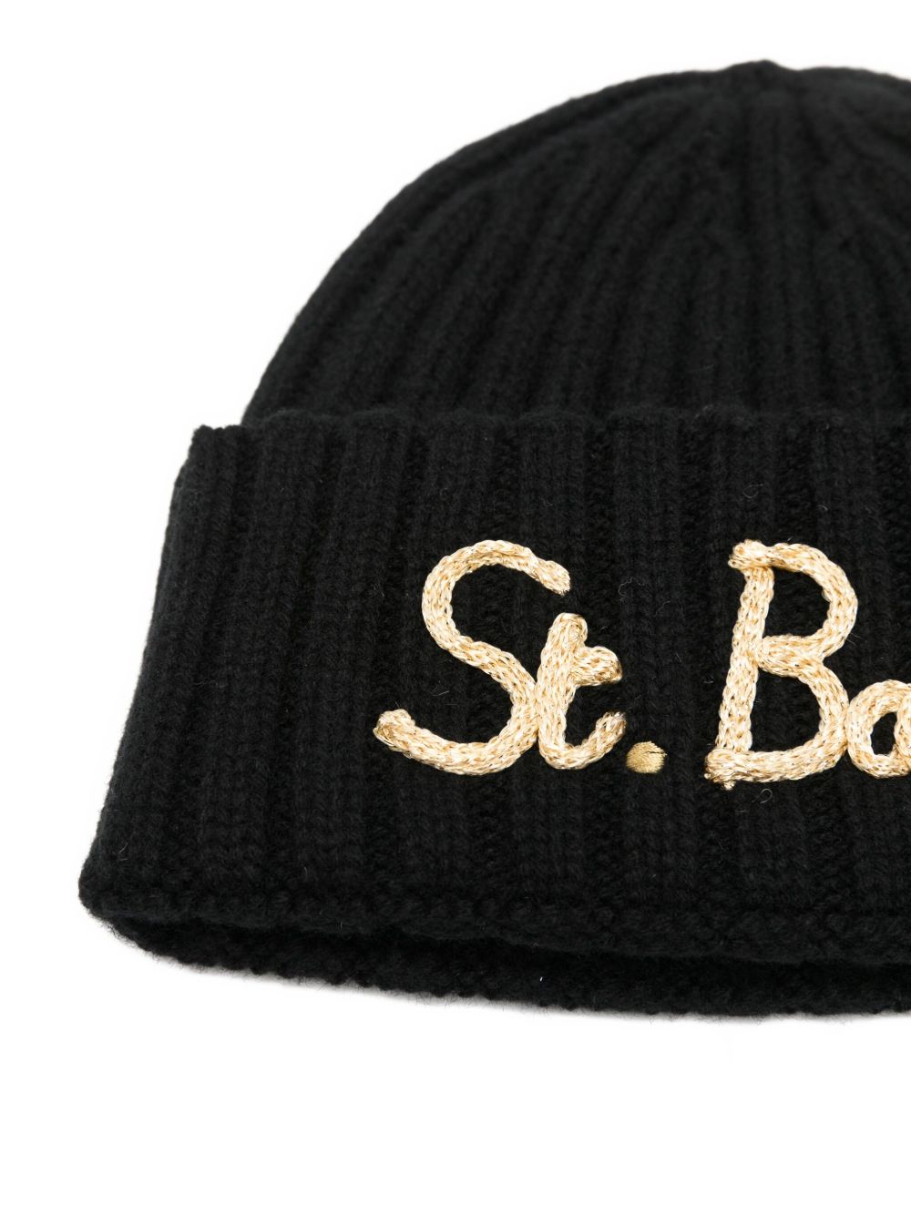 Cappello con logo ricamato, nero, lavorazione in maglia.