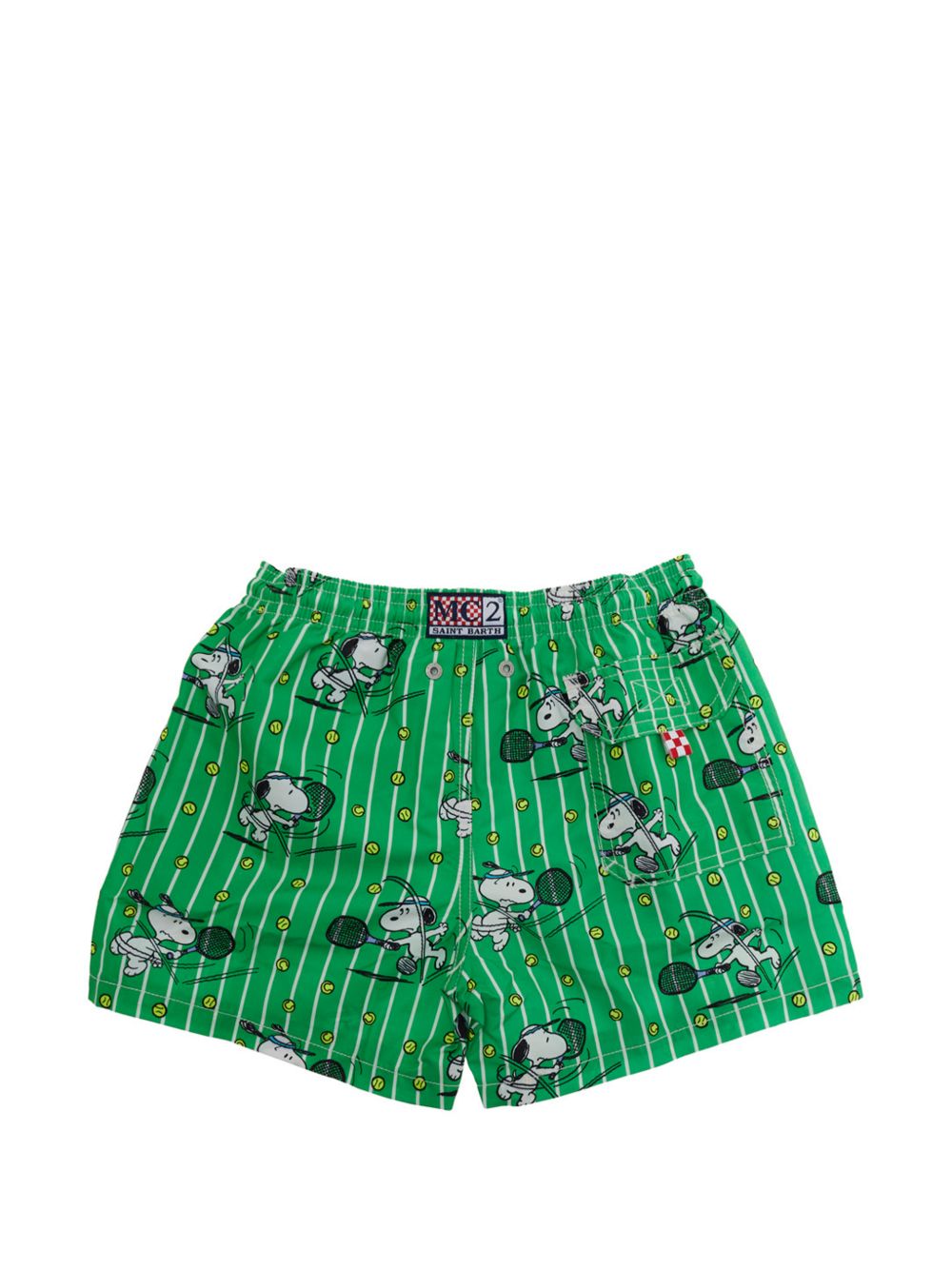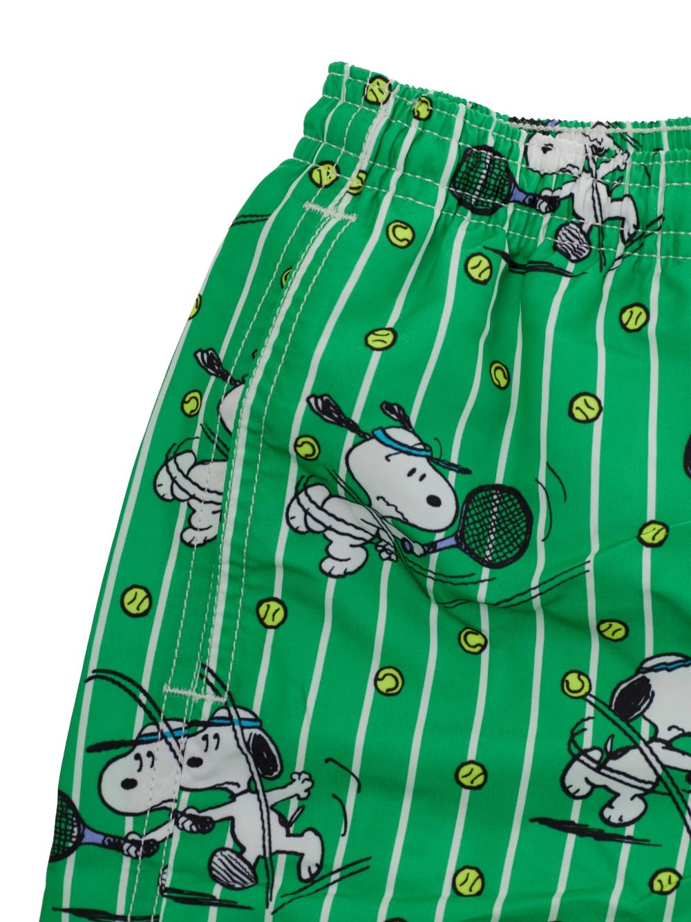 Costume con vita elasticizzata con stampa a righe verdi, stampa Snoopy.