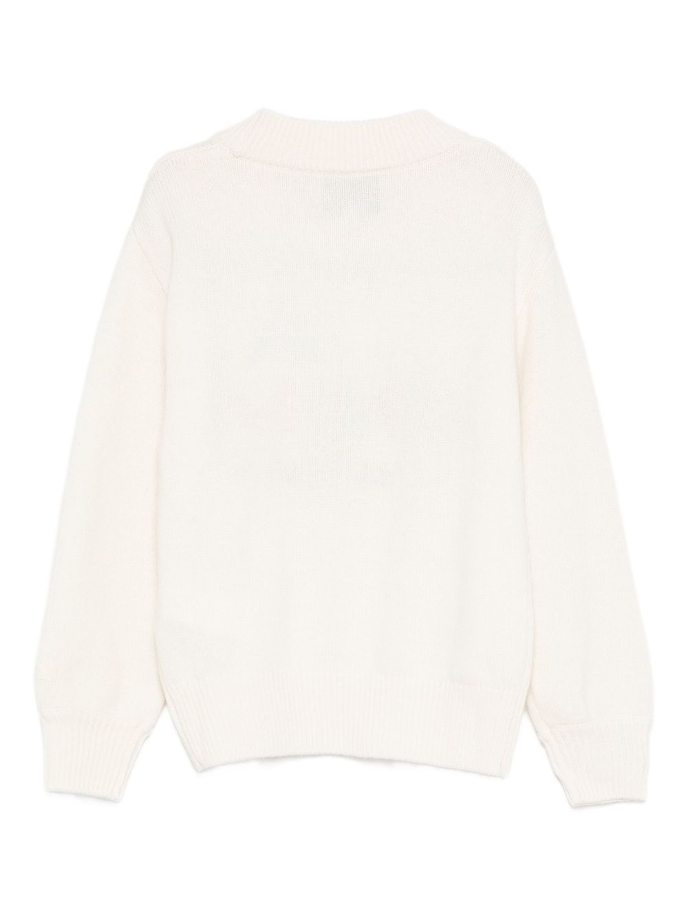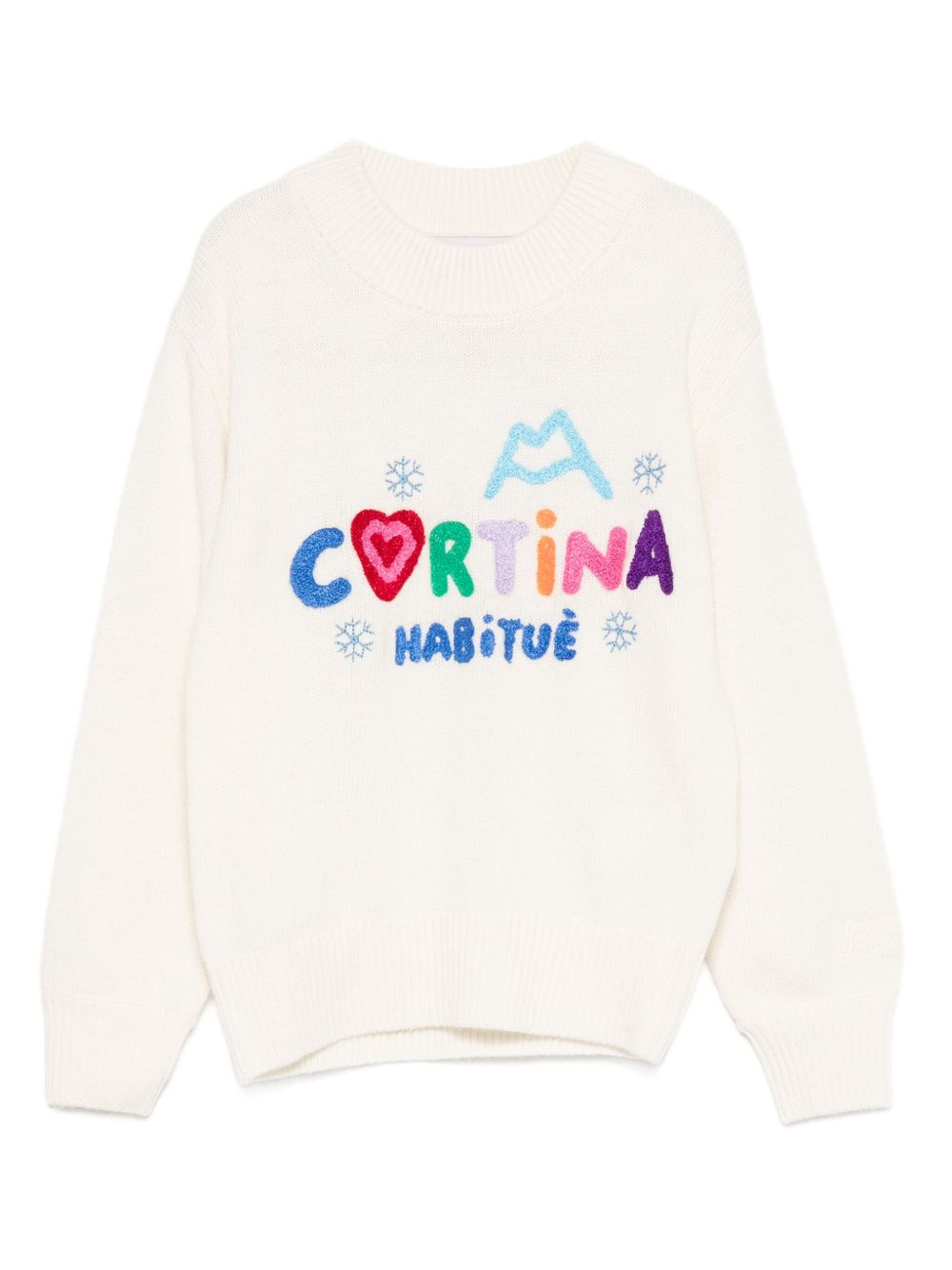 Maglione con design ricamato, girocollo, maniche lunghe, orlo e polsini a coste, panna.