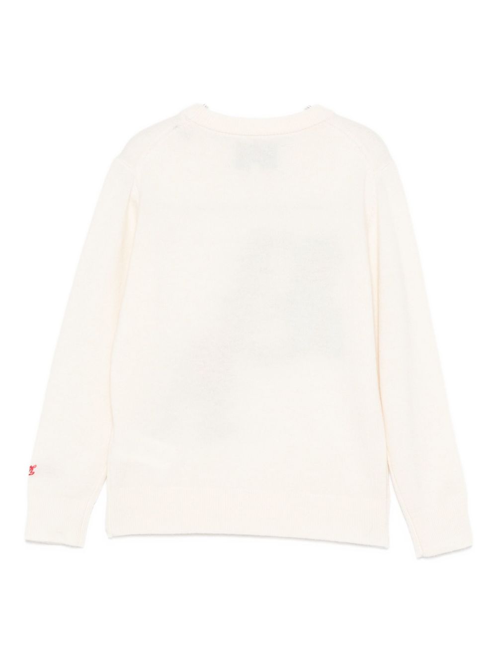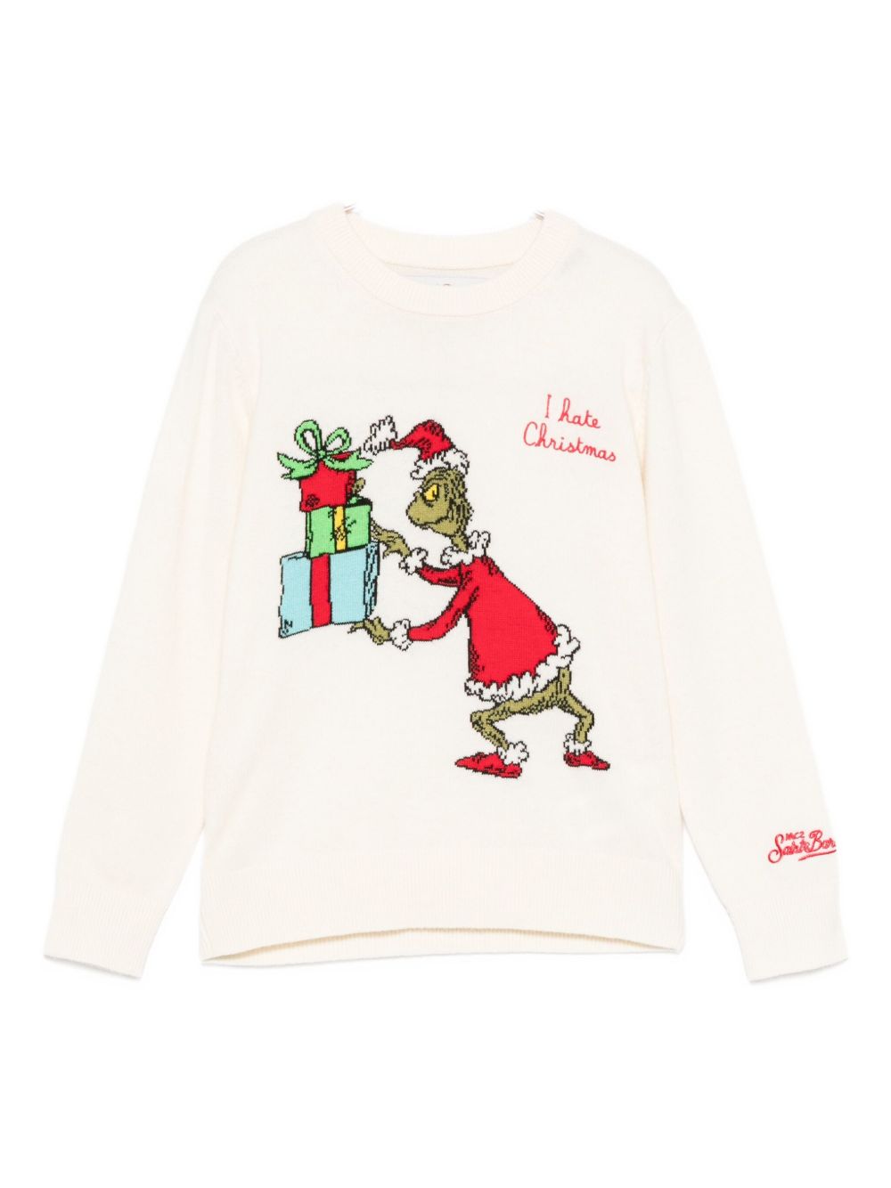 Maglione girocollo bianco maniche lunghe stampa grafica polsini a coste orlo a coste