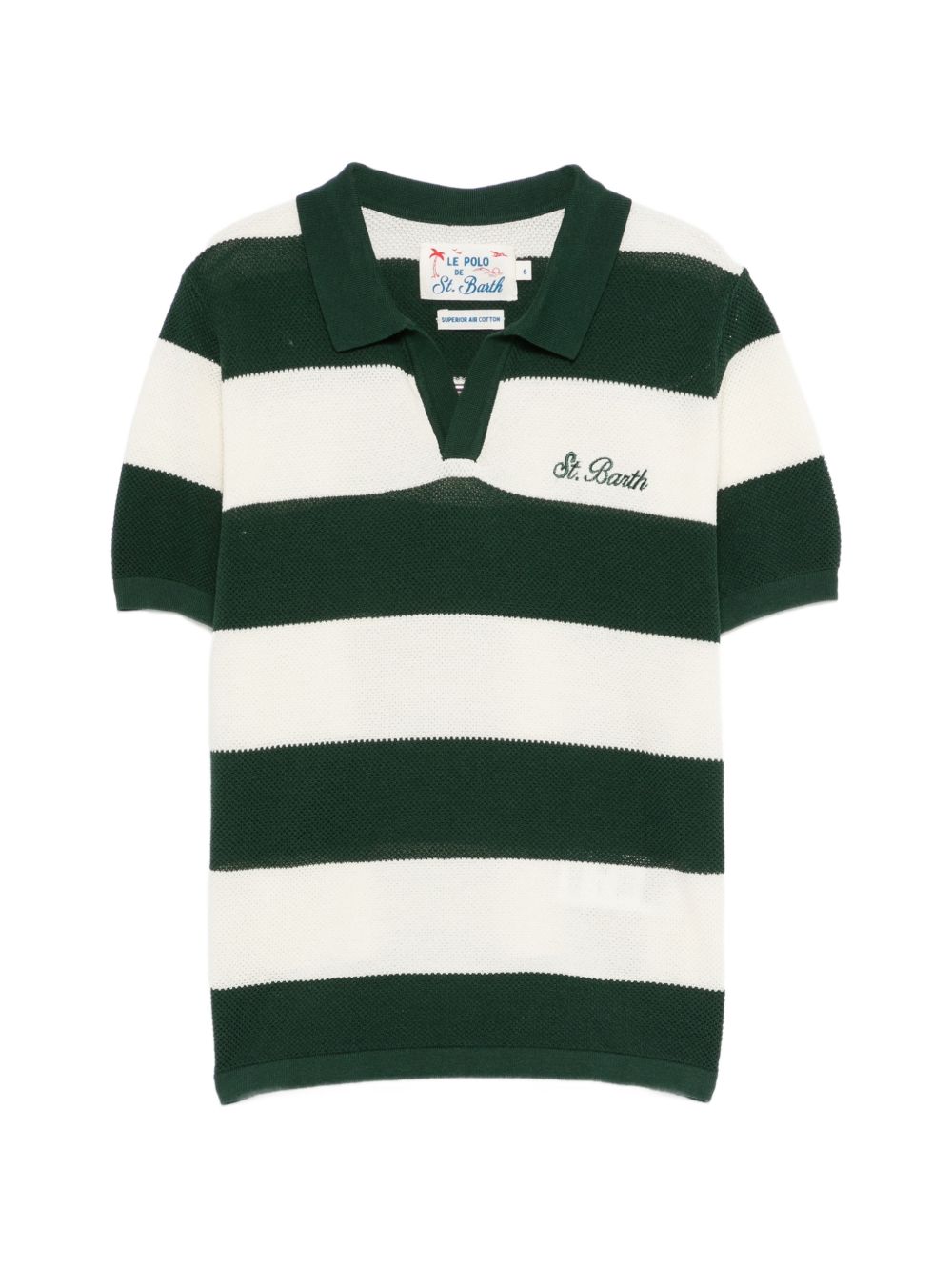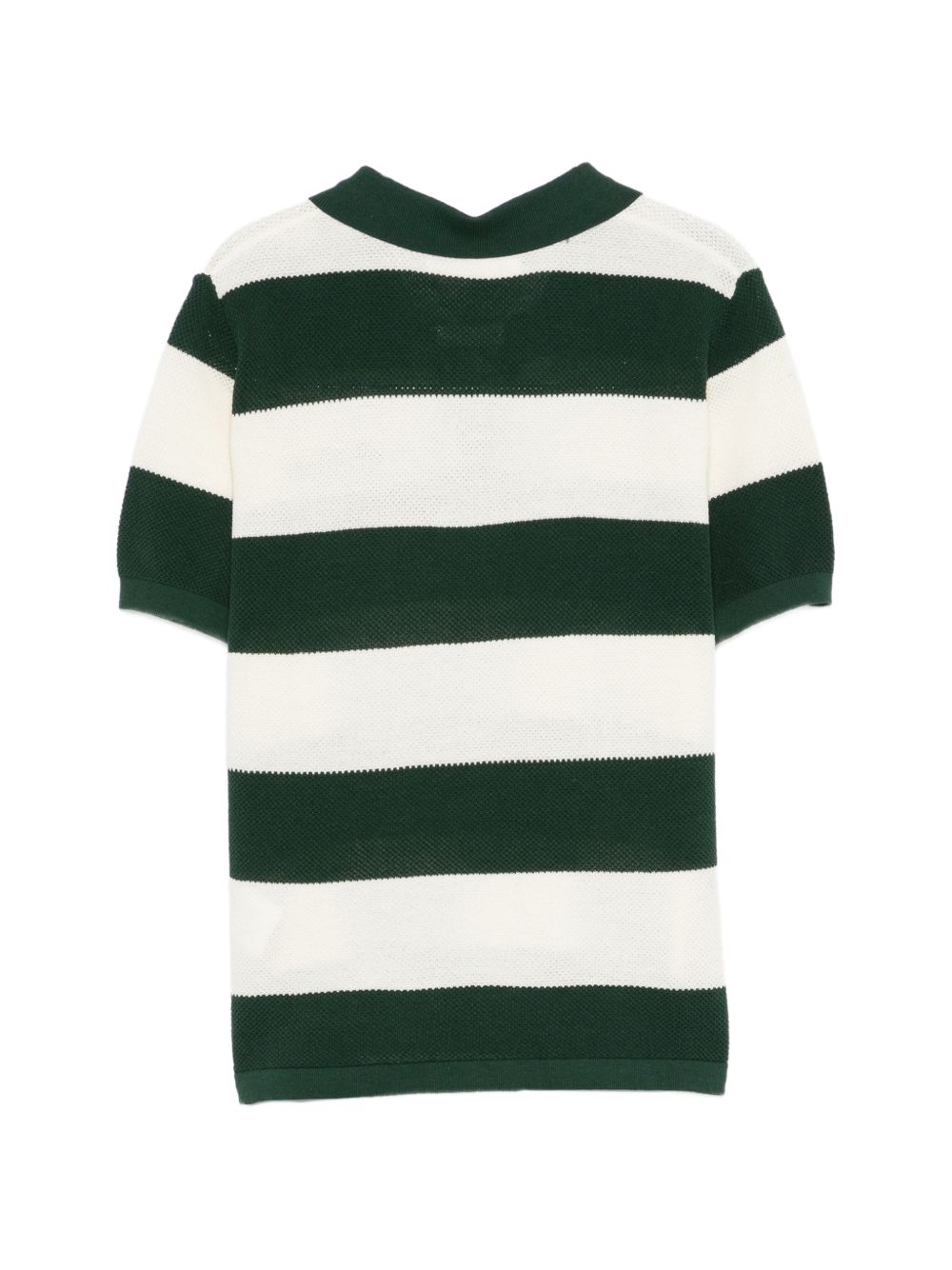 Polo verde e bianco, motivo a righe, design con colletto, maniche corte.