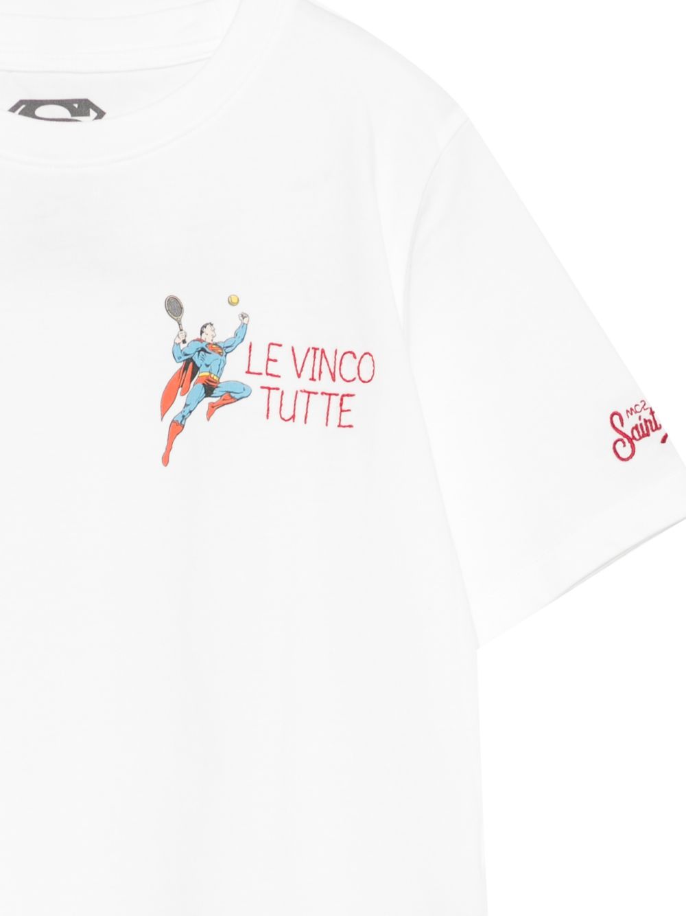 Maglia bianca a maniche corte con scollo rotondo. Questo è un capo in edizione limitata.