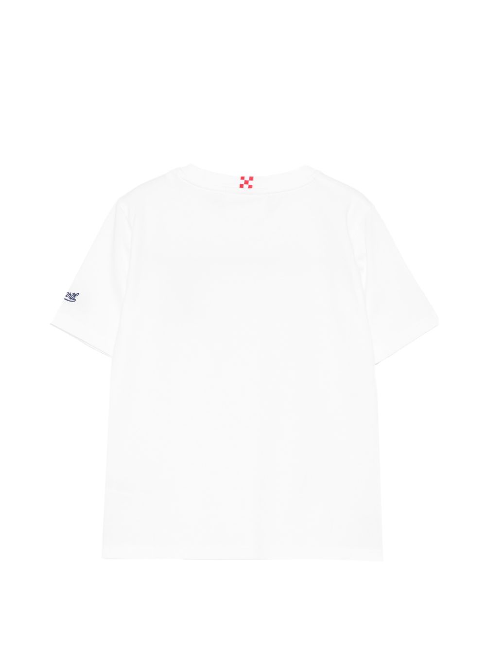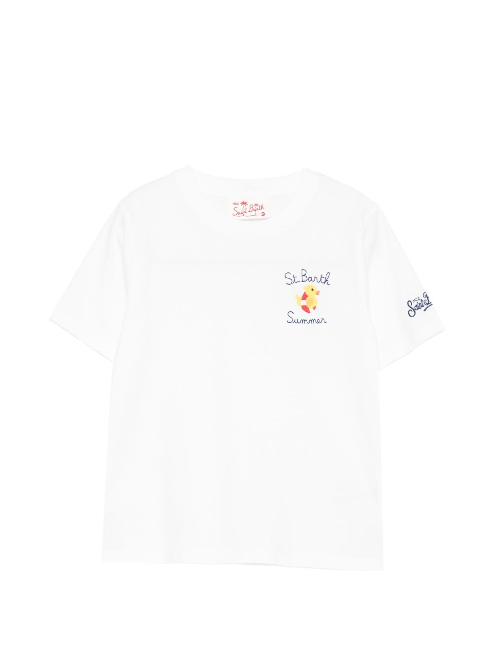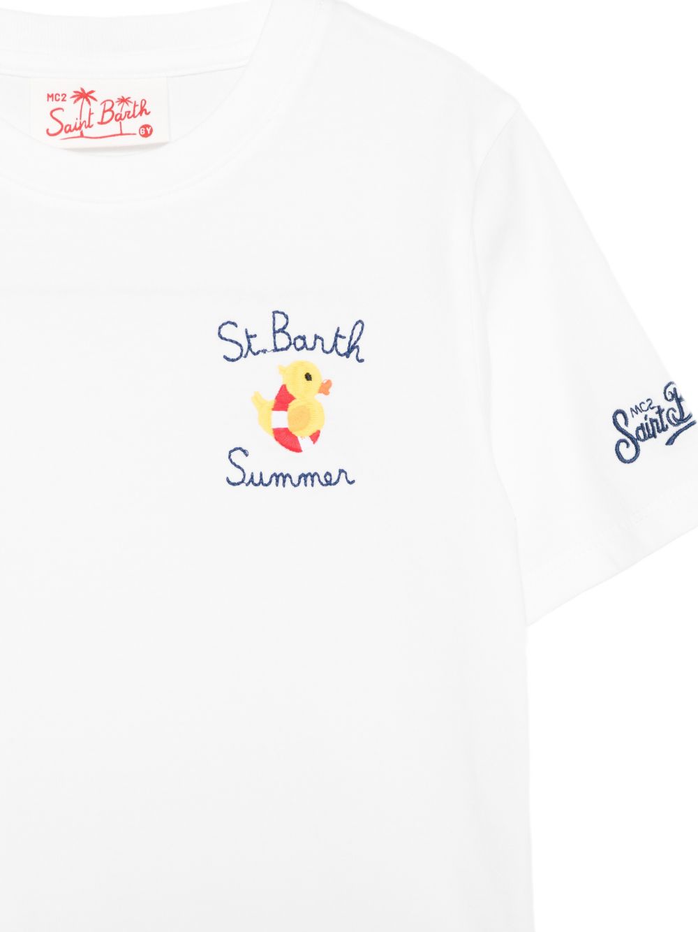 T-shirt con motivo anatra ricamato, bianco, logo ricamato sulla manica, girocollo, maniche corte, orlo dritto.