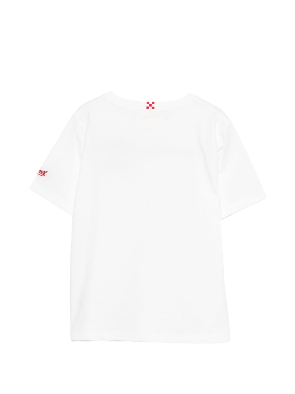 T-shirt con stampa, girocollo, bianca, maniche corte.