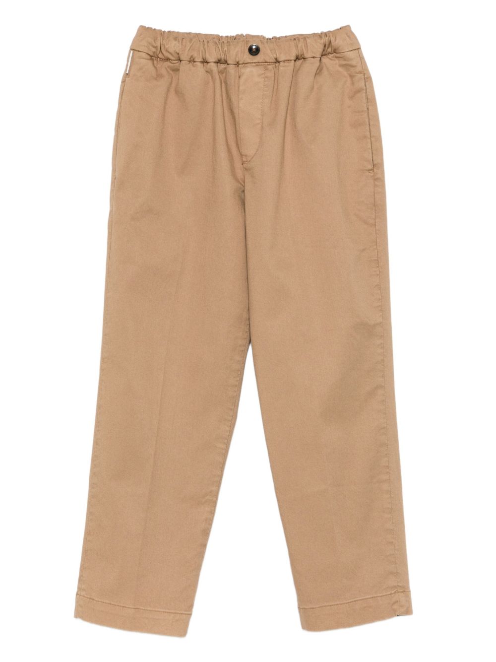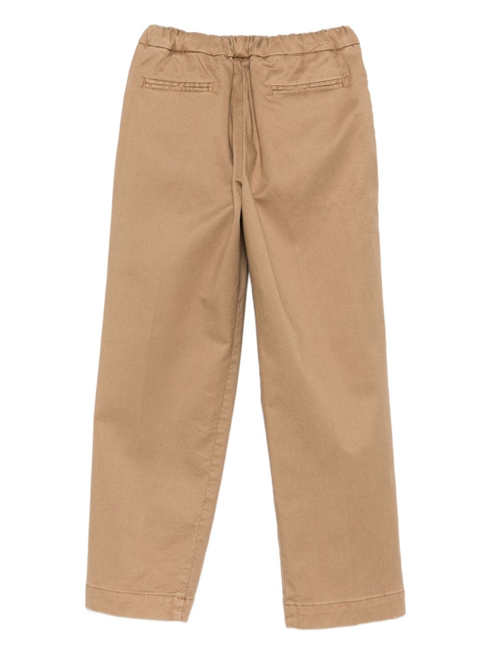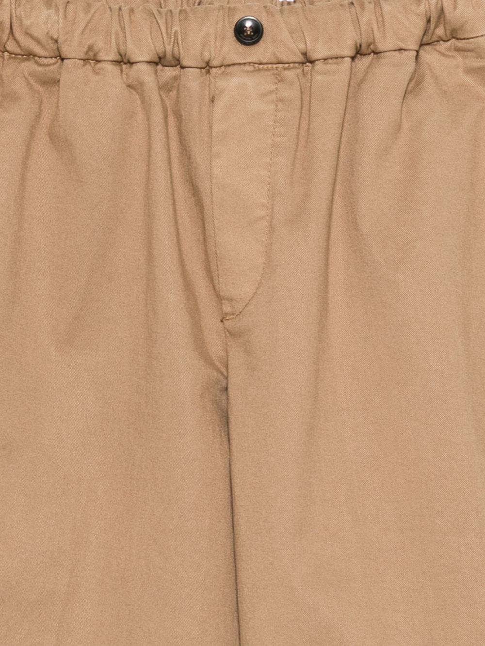 cintura elasticizzata color cammello, chiusura con bottoni, tasca posteriore, cuciture tono su tono, gamba dritta