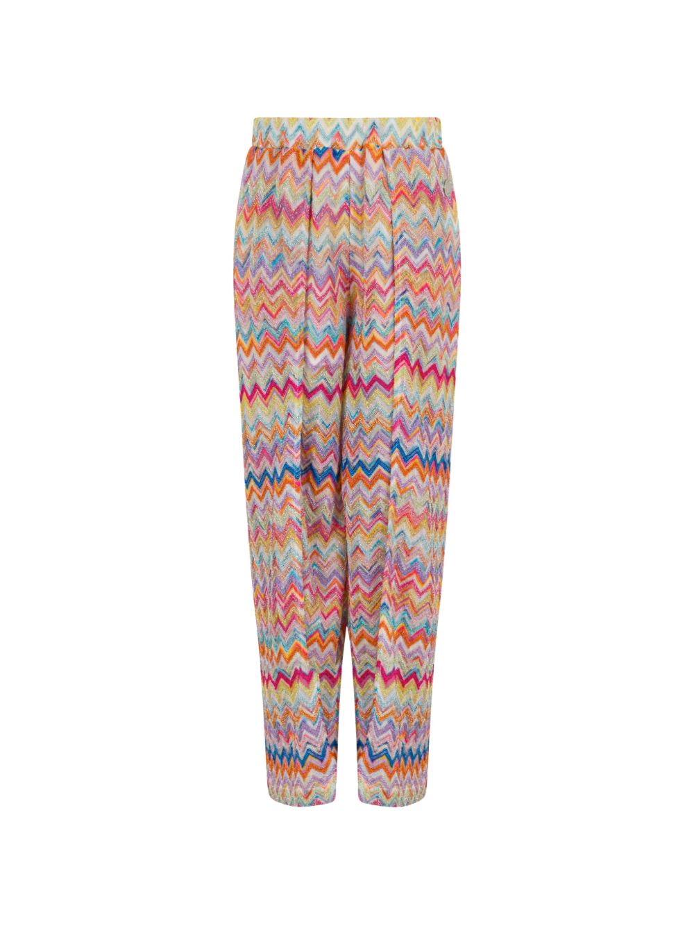 Pantalone con motivo zig-zag, multicolor, elastico in vita, gamba affusolata.