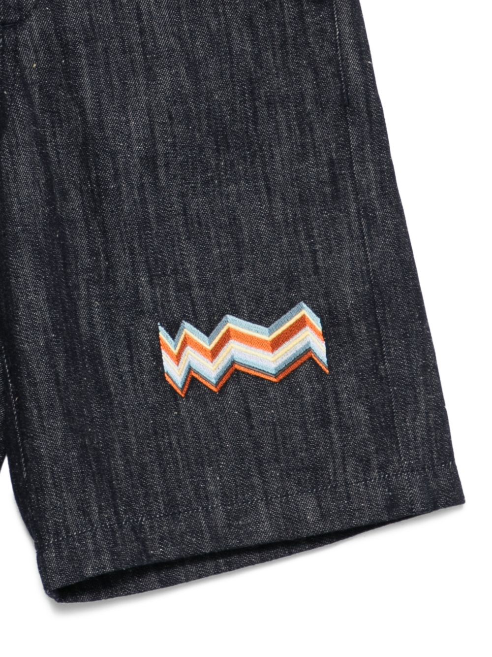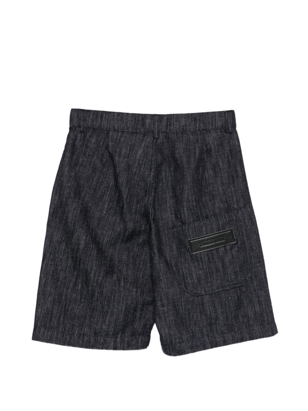 Shorts con logo, chiusura con bottoni, blu, due tasche, passanti per cintura.