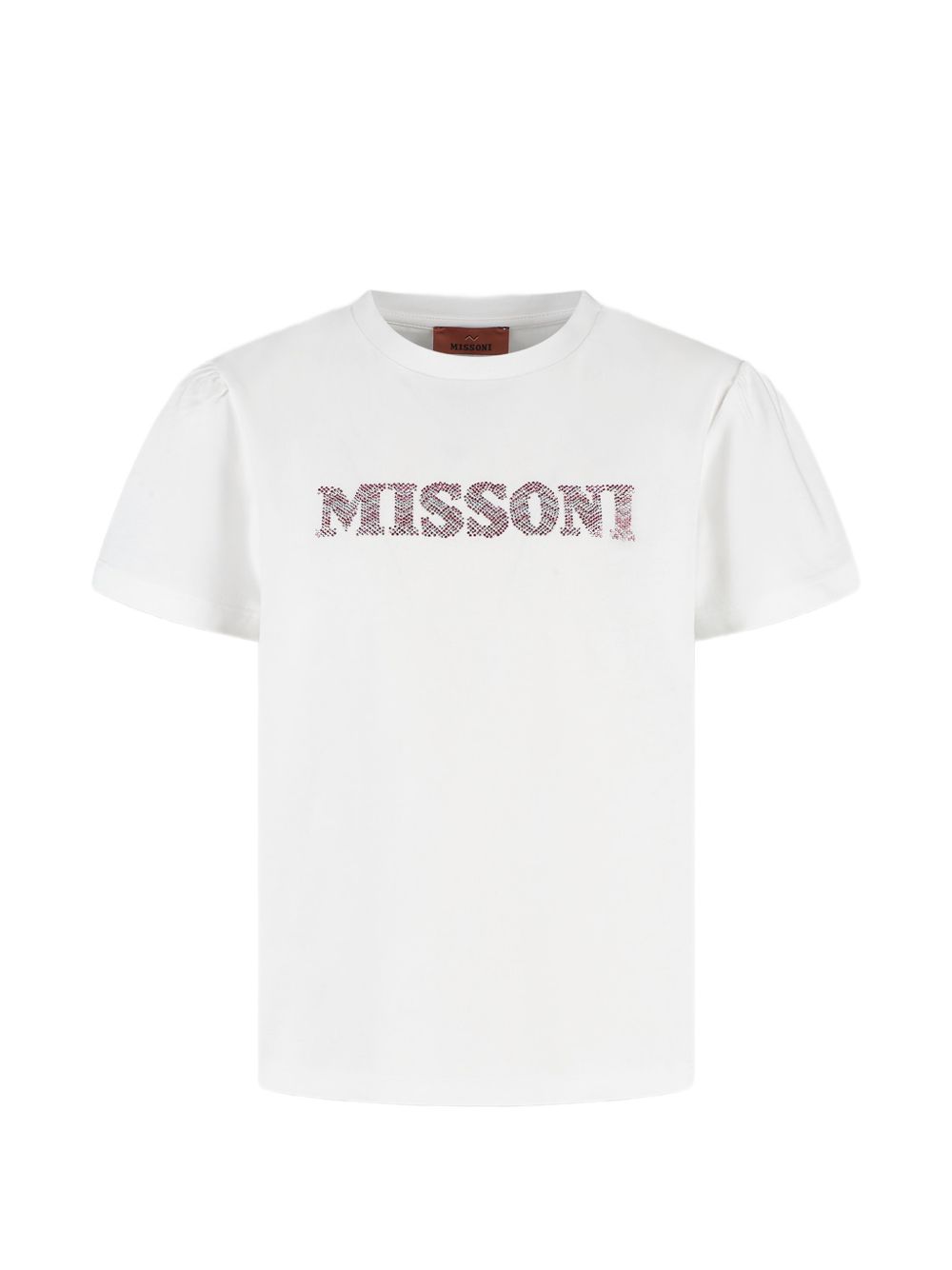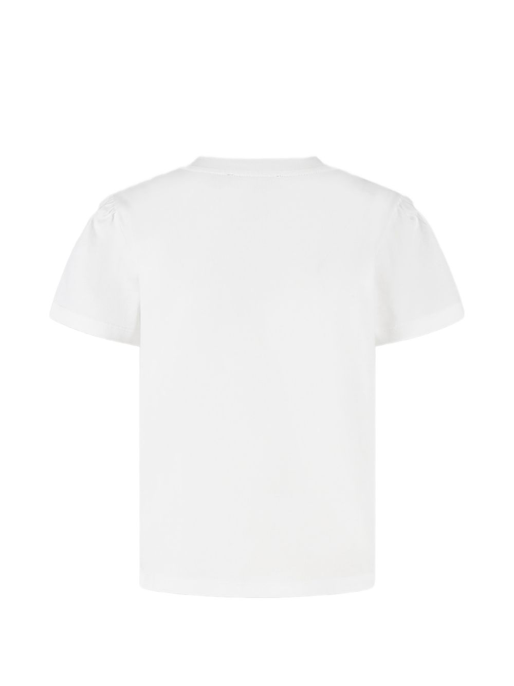 T-shirt maniche corte, bianco, scollo tondo, logo decorato.